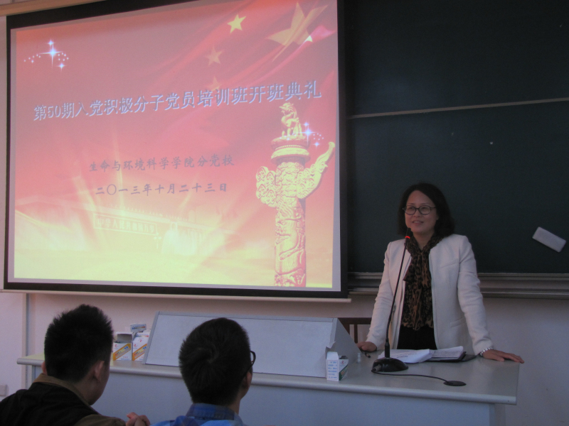 为使广大学生入党积极分子了解无产阶级思想,明确共产主义纲领,把握先进文化的前进方向, 10月23日13:30,生命与环境科重庆时时彩 分党校在B楼107室隆重举行第五十期入党积极分子党课培训开班典礼,并在102室开展党课培训第一讲。重庆时时彩 党委书记周春儿出席本次开班典礼,党建组织委员倪雅主持开班典礼。