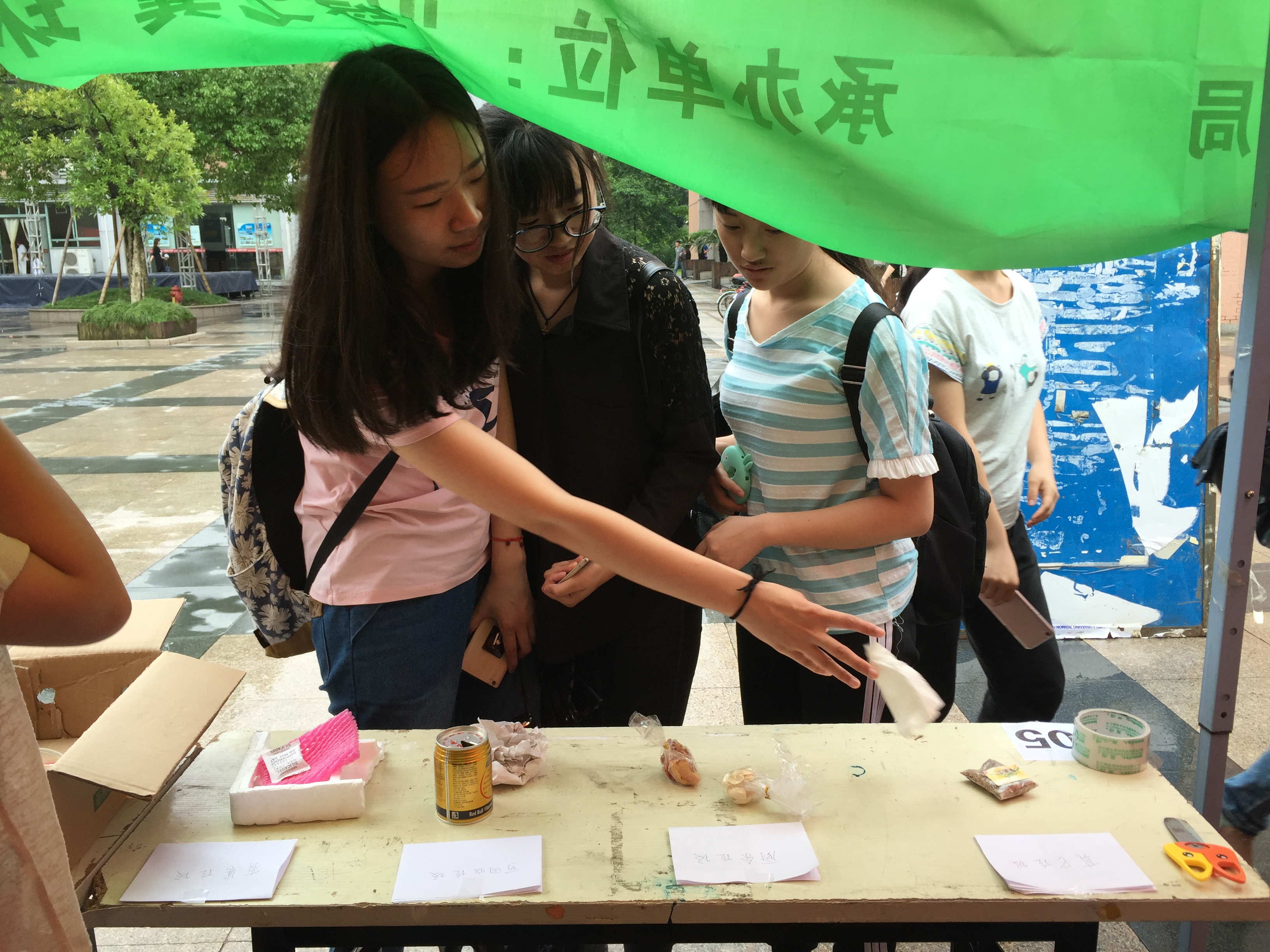 活动现场有抢凳子、数字炸弹和垃圾分类等有趣的小游戏。参与者可以任选一个感兴趣的小游戏参加。我们选取了平时生活中随处可见但经常被人们错误区分的几种垃圾,比如废弃的餐巾纸,毛巾,泡沫塑料等等。参与垃圾分类游戏的同学中有能够完全正确的区分所有垃圾的人,也有错误放置垃圾的人。但经过裁判的耐心讲解,参与者都有很多实用的收获。大家都感叹从这个游戏中学到了不少,非常支持此次六五环境日的专题活动,并承诺会更加关注我们的环境,善待我们的环境。整场活动在大家的热情和支持下成功结束。
