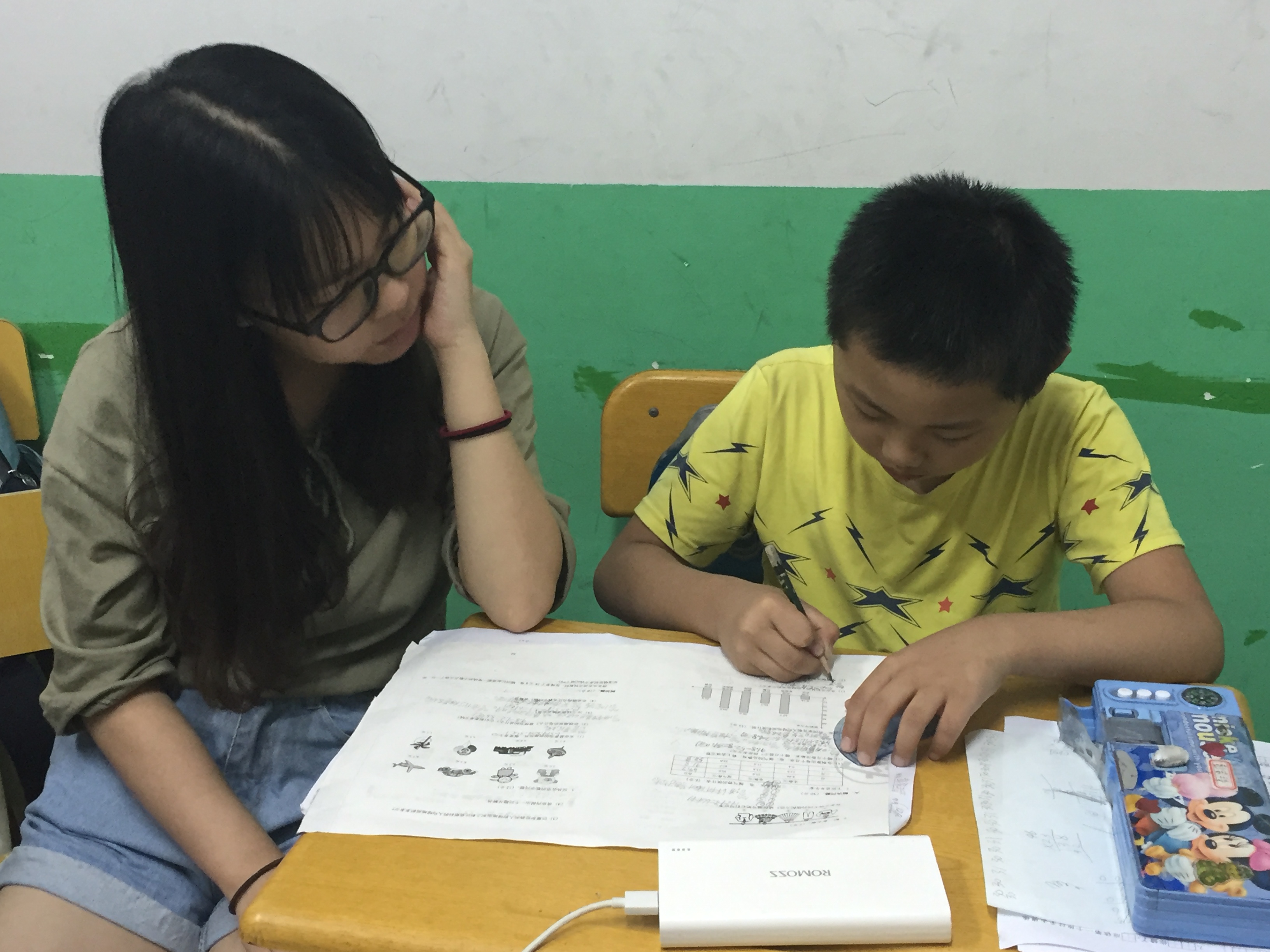 从接待小朋友到书院教室里到参与小朋友的教育教学活动、户外游戏活动等,对在前一天积累经验的我们——重庆时时彩 赴杭州幼儿园教育小分队来说已经是一件不困难的事情。然而,院方接下来给我们布置了新的任务:辅导小朋友做家庭作业。走进自习室,孩子们已经在认真的做着他们的家庭作业,小分队决定采取“一对一辅导”的形式,每个人负责一个孩子。由于是第一次辅导孩子,小分队成员和孩子们之间缺乏应有的默契和磨合,个别孩子因为对小分队成员还不熟悉显得十分内向,一开始秩序稍显尴尬和混乱。在小分队成员的带动下,孩子们一一做了自我介绍,孩子们对成员也有了简单的认识,通过简单的聊天和交流,彼此之间有了互动,孩子们渐渐地打开了心扉,慢慢学会了配合老师的辅导。就这样在这种和谐的氛围中,辅导作业任务也显得十分顺利,完成度很高。结束了辅导作业活动后,小分队成员在和小朋友们的交流了解到他们的生活习惯、卫生习惯等,对其中个别小朋友错误的卫生习惯进行纠正。由此,小分队成员和小朋友们的关系越发亲密。