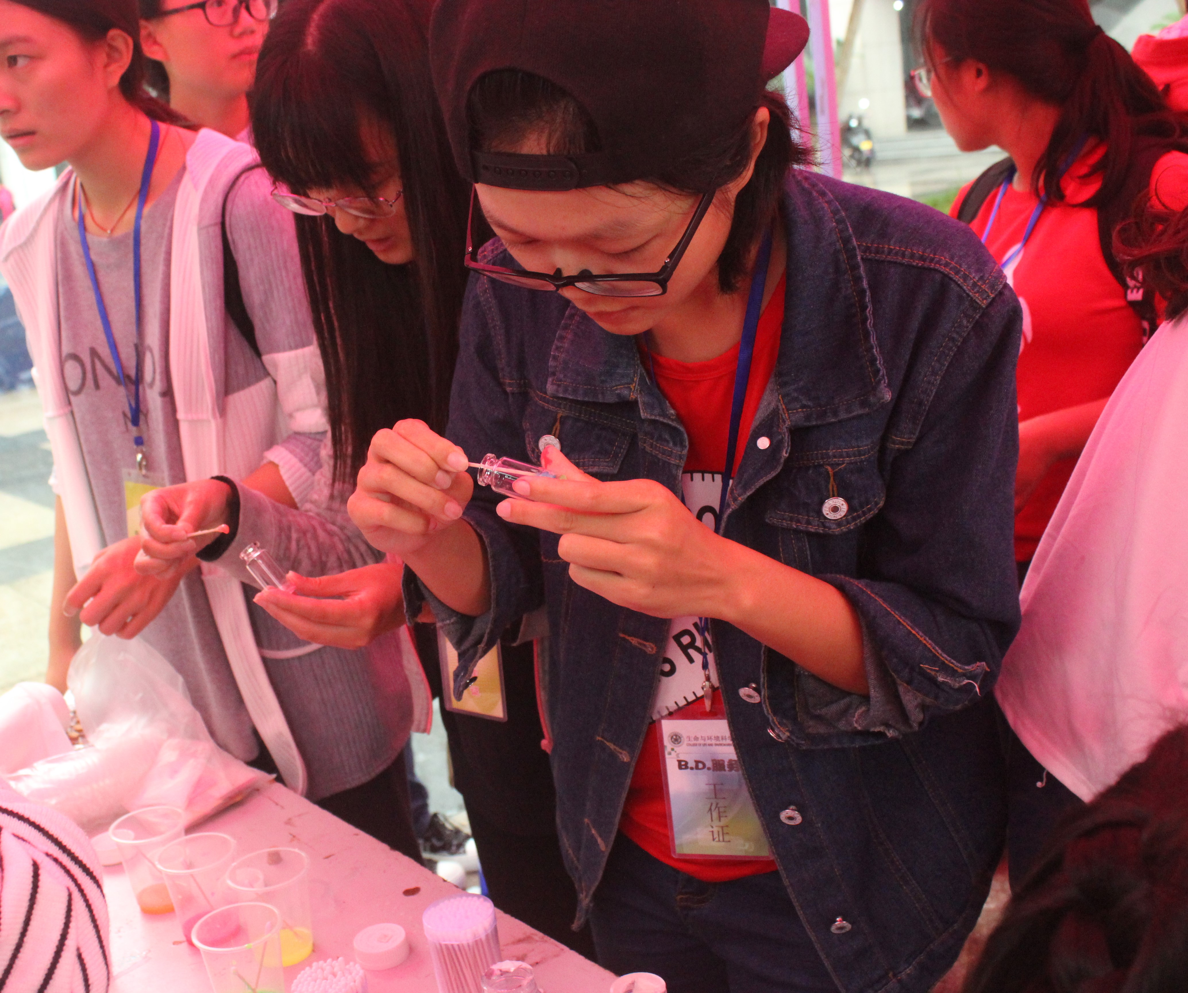 此次DIY手工节是B.D.服务社举办的第七届手工节,一如既往的受到了广大同学的欢迎和积极参与,即使天公不作美,雨一直淅淅沥沥的下着,但并浇不灭同学们的热情,许多同学下课后便结伴来制作属于自己的DIY。而今年的手工节在往年成功举办的基础上加强了改进,有此前最受欢迎的叶脉书签制作,也设置了荧光瓶制作和超轻粘土制作大赛,同样也吸引了更多的同学的参与。“萧萧秋林下,一夜忽先委”,叶脉书签的制作往往是最受期待的项目,一片小小的叶子,亦会为我们带来无限的惊喜。秋风起,枯叶无声。心灵手巧的同学们利用颜料,树叶制作了这一枚枚精致的小书签。牙刷轻轻地拍打叶片,数分钟后,叶肉掉落,露出条纹清晰的叶脉,用颜料为树叶染上颜色,再用塑料片过压。就这样新奇,有创意的她们用这一小枚书签为这个荒凉的秋天留下一些绿意。荧光瓶制作也唤起了大家的少女心,共同感受漫画世界里的那份纯真与感动。制作完成的同学都期待晚上的到来,可以尽快看到荧光瓶闪闪发亮的一面。拟出“心跳的doll”——超轻粘土的制作大赛,仿佛让同学们都回到了儿童时代,回忆起当初捏着橡皮泥玩耍的日子。同学们制作的玩偶逼真也不失童趣,可爱而活波,就像真的会心跳一般。一个个成型的可爱玩偶放在教室寝室更是一道别样的风景。