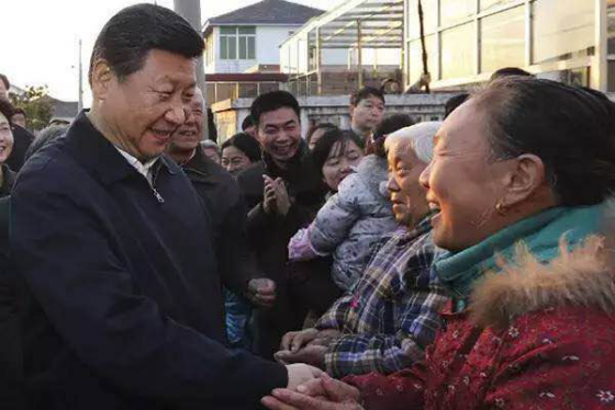 2014年12月13日至14日,中共中央总书记、国家主席、中央军委主席习近平在江苏调研。这是13日下午,习近平在镇江市丹徒区世业镇永茂圩自然村调研时同村民亲切握手交谈。新华社记者 兰红光 摄