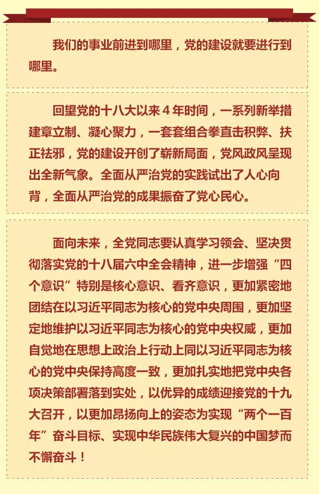 习近平总书记在全会上发表的重要讲话,深刻阐明全面从严治党的重大意义,深入回答管党治党的一系列重大理论和现实问题。只有深入学习才能准确掌握行动的纲领、实践的遵循。