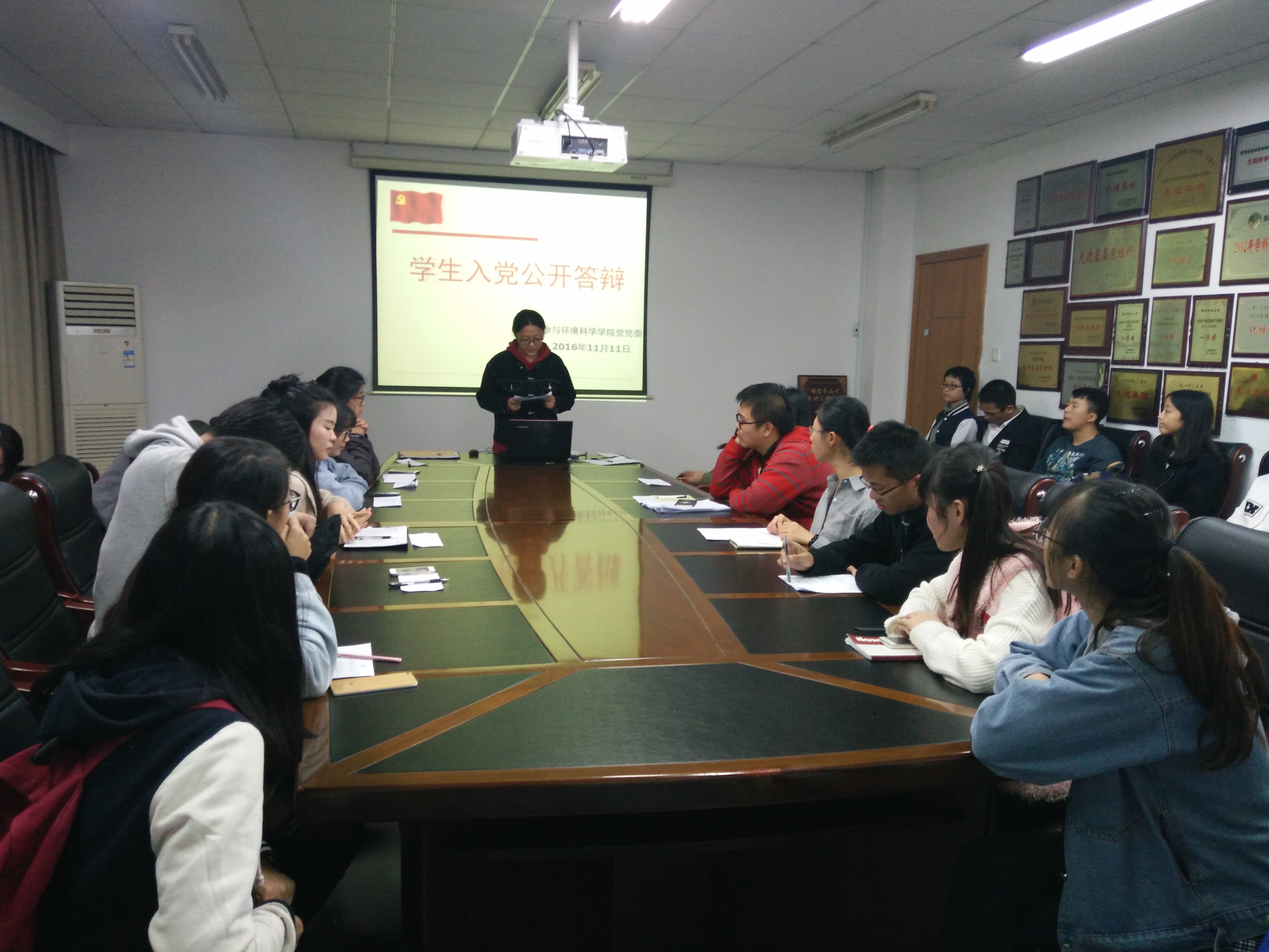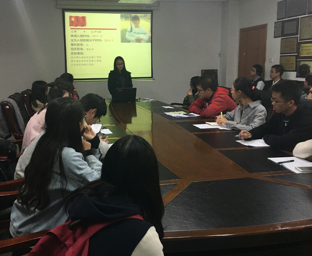 2016年11月11日,重庆时时彩 本科生第二党支部在行政楼804开展了入党积极分子答辩会。本次与会人员有4名正式党员,2名预备党员,以及24名入党积极分子(包括答辩选手)和入党申请人。会议由张建楠同学主持。