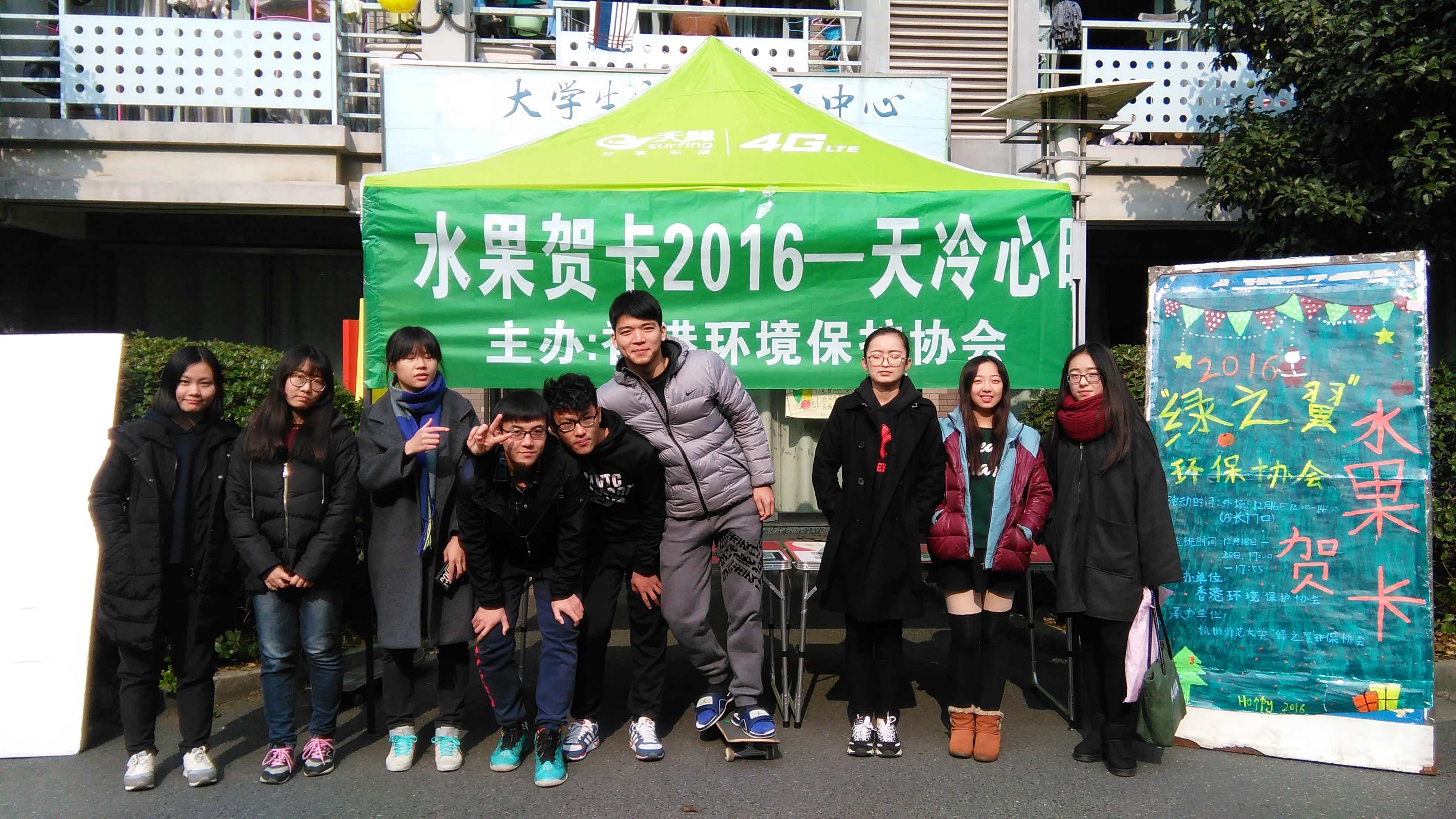 12月16日,重庆时时彩 "绿之翼"环保协会在大学生成长指导中心门口成功举办了2016全国高校水果贺卡的外场宣传活动。水果贺卡是由香港环境保护协会主办的一个延续了十年的公益环保项目,提倡同学们用水果代替纸质贺卡,在圣诞节传递祝福,旨在唤起同学们的环保意识。