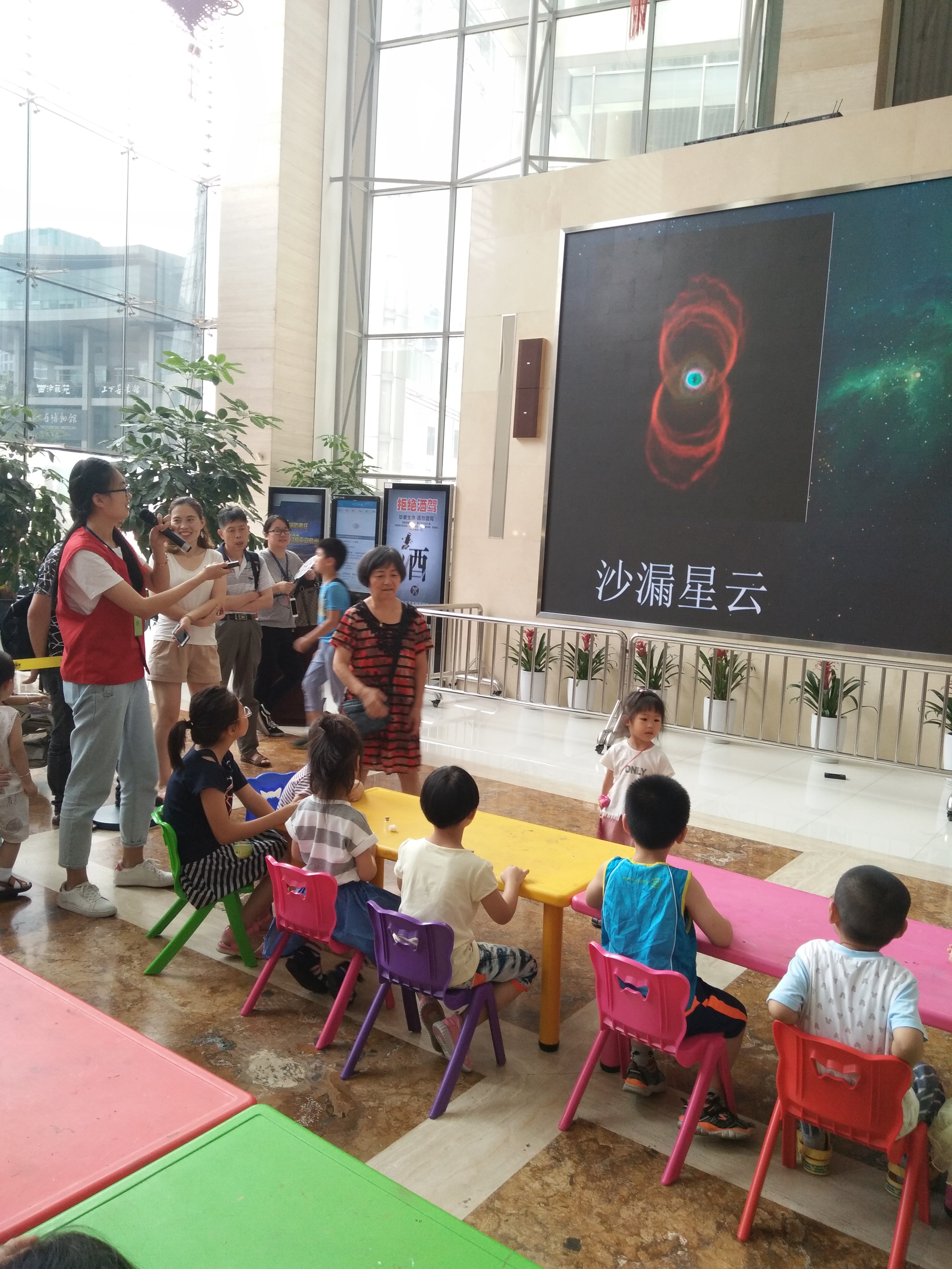 七月八日上午,重庆时时彩 B.D.服务社“环保小课堂”小分队在浙江自然博物馆开展了“星空风采我知道”——星云瓶制作亲子活动。