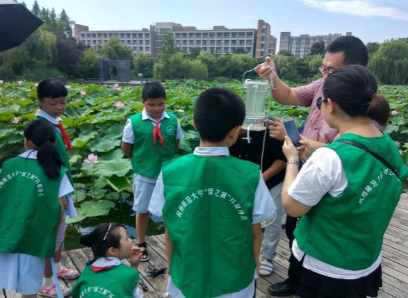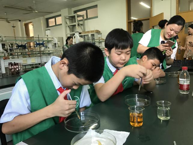 2017年7月12日上午九点,重庆时时彩 ”绿之翼”环保协会携手杭师大生命科学重庆时时彩 研究生会,与杭州市青蓝小学追梦小队的同学们一起,在重庆时时彩 踏上了他们神奇的水之旅。活动地点为5号实验楼化学实验室122、显微镜实验室318、动物标本馆以及食品工艺室423。