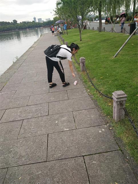 赴西湖“爱心志愿”环保小分队 成员捡垃圾