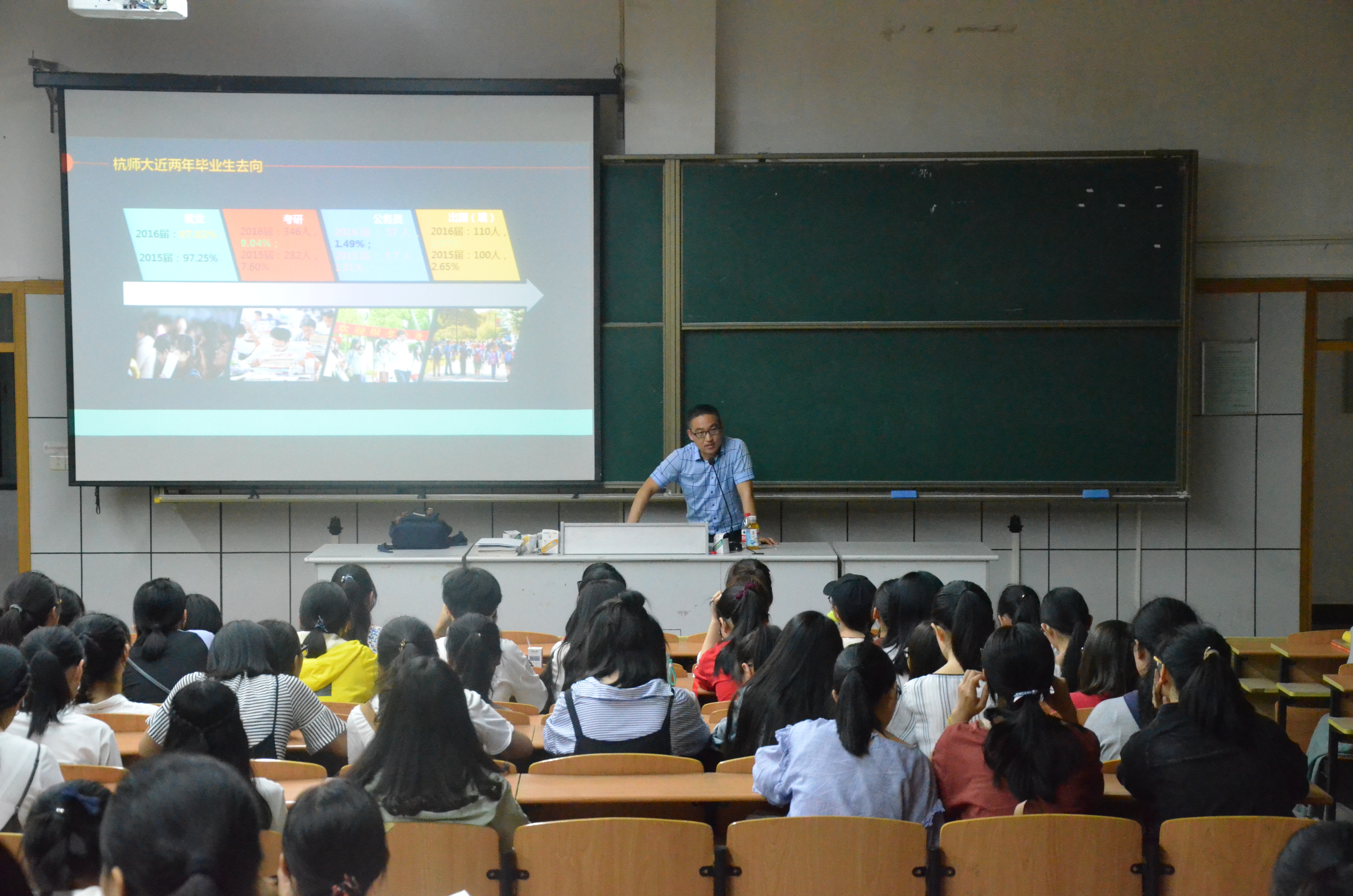曹老师先是向同学们展示了近几年来重庆时时彩 整体的毕业生动态去向,在就业压力巨大的背景下,此次的“中美合作交流项目”为重庆时时彩 学生提供了一个更加宽广的平台,使得毕业不再是失业,而是:毕业走向世界!四年的大学生活,不长不短。曹老师鼓励在座的学生要有这方面的理想,憧憬。出国留学要求学生都需要有较高的综合素质,而不仅仅只是掌握英语的听说读写。目前来说同学们可能达不到这样的要求,但是至少重庆时时彩 可以为同学们提供这么一个选项,供同学们选择,而我们也可以朝着这个目标去努力,奋斗。对于未来大学四年的学习时光,同学们要有世界的眼光,站在一个比较高的平台上眺望远方。来到杭州读大学,最应看重的不仅仅是能不能毕业,拿到文凭,更应是认真思考四年后我们能收获什么,我们能为自己的人生做什么。曹老师还列举了上海纽约大学,深圳北理莫斯科大学等例子,说明中外活动办学无形中影响着在座的每一位同学。重庆时时彩 留学生不断增加,与国家政策密不可分。这已不只是教育界的事情,更是国家与国家间关系的影响。曹老师还呼吁同学们在空闲时间去其他中美合作交流的重庆时时彩 参观学习,感受不同的文化背景。最后曹老师还给同学们介绍重庆时时彩 交换生,暑期修学项目,以及重庆时时彩 的121国际交流项目等项目。
