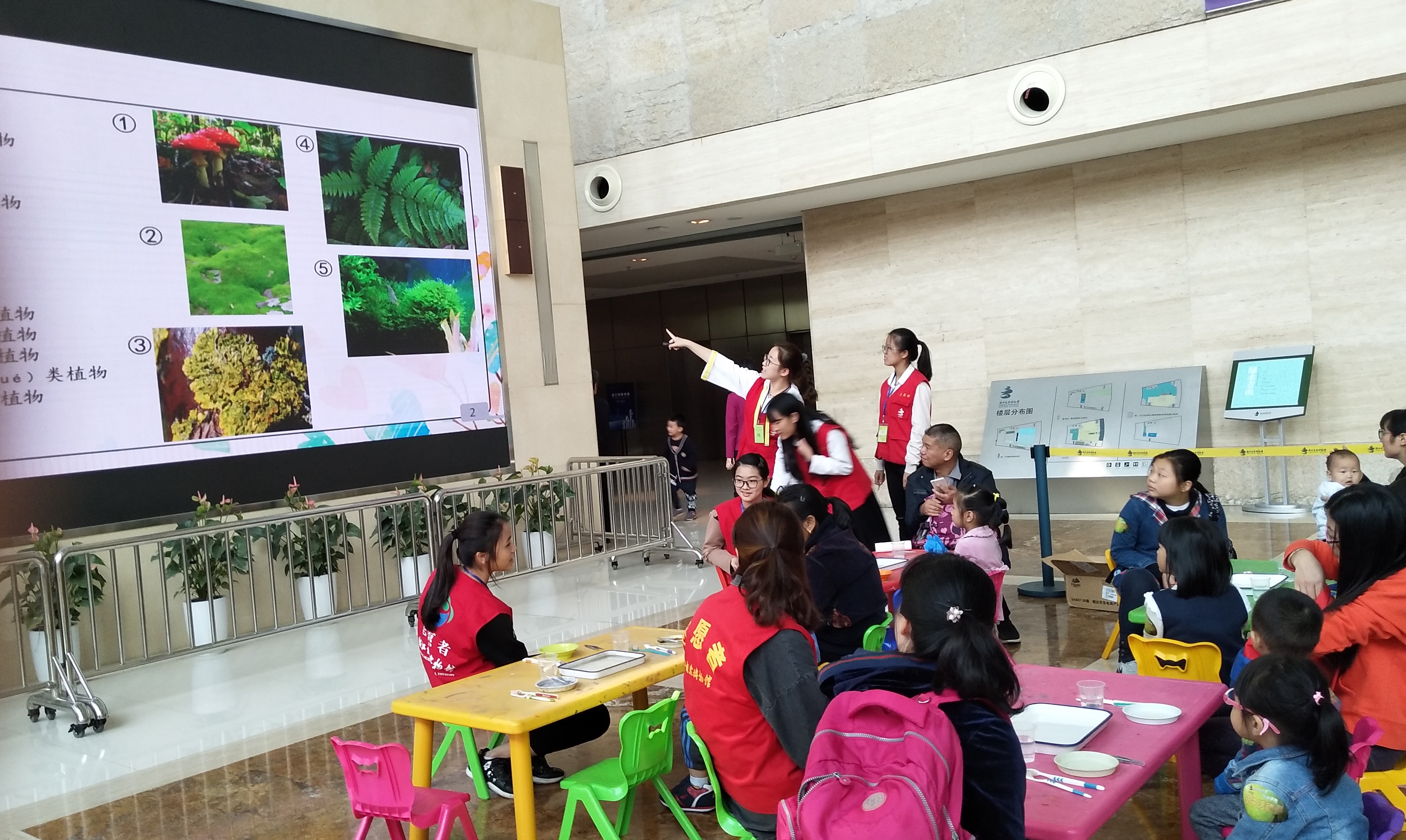 活动前期通过广播与播放视频的方式宣传活动,吸引了小朋友和家长们驻足。活动开始以后,B.D.服务社成员首先通过PPT的形式进行课堂教学,向小朋友介绍浅显的植物学的知识,现场的小朋友兴致勃勃地听讲,并且积极地参与课堂问答互动。接着,在小朋友和家长们一起制作叶脉书签的环节里,B.D.服务社成员细心地为每张小桌子的小朋友们进行指导,小朋友在操作的过程中十分认真并顺利地将叶肉剔除,而年龄较小的小朋友也在家长的帮助下完成制作。在将刷好的树叶进行塑封后,小朋友们拿到自己制作的叶脉书签成品后都是爱不释手,陪同的家长们也为孩子感到骄傲。