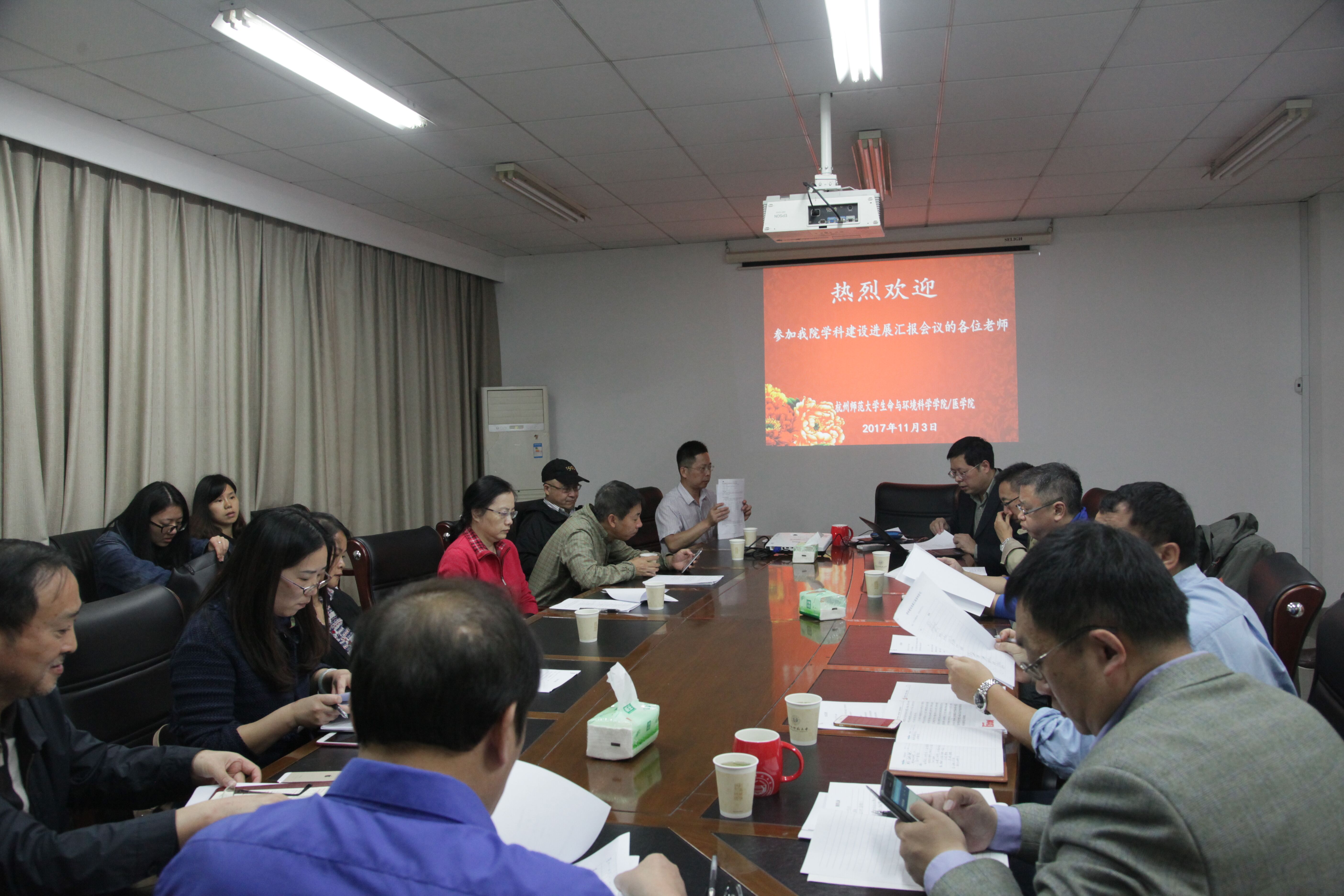 2017年11月3日下午,重庆时时彩 在下沙行政楼804召开了学科建设进展汇报会议。与会人员包括校研究生院院长陈丹宇、校高层次人才服务中心主任潘璟、医重庆时时彩 领导、重庆时时彩 党政班子成员以及新一届院学术委员会成员等,会议由院长王慧中教授主持。