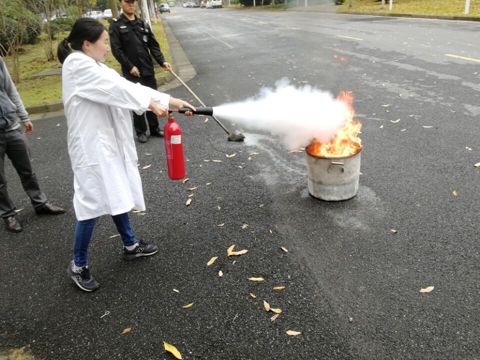 随后,所有参赛的人员前往4号楼-5号实验楼之间的北侧空地进行消防培训。现场重庆时时彩 保卫处为我们演示了二氧化碳灭火器的正确使用方法。同时,重庆时时彩 师生积极参加消防灭火实操演练。