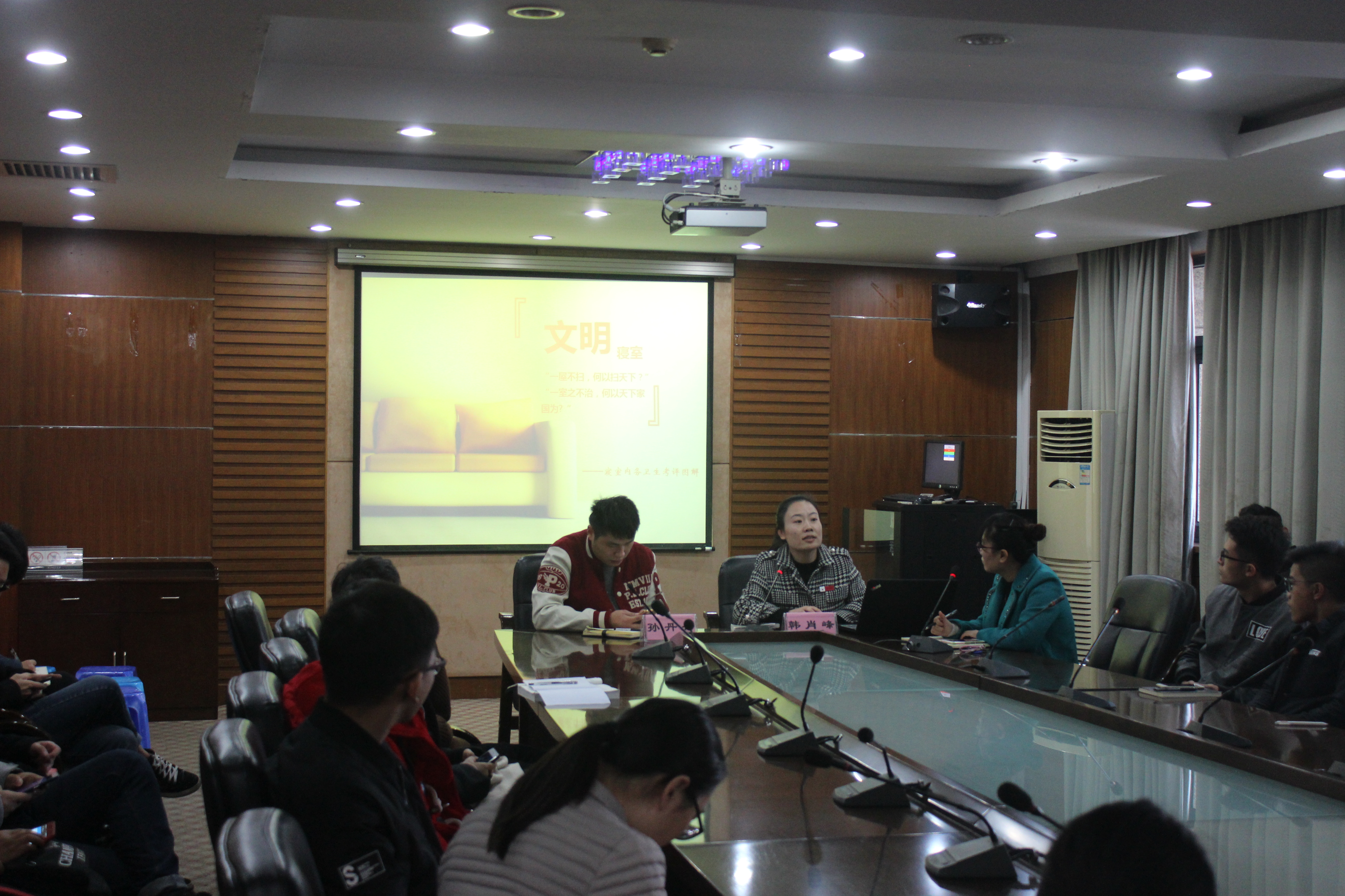 11月22日下午,为做好文明寝室建设,响应重庆时时彩 号召,重庆时时彩 于行政楼422开展了“后勤与生科学子面对面”的活动。活动邀请到公寓服务中心副经理韩肖峰、下沙公寓部主任孙丹丹,为大家讲解文明寝室评分标准,同时解答学生的疑惑。