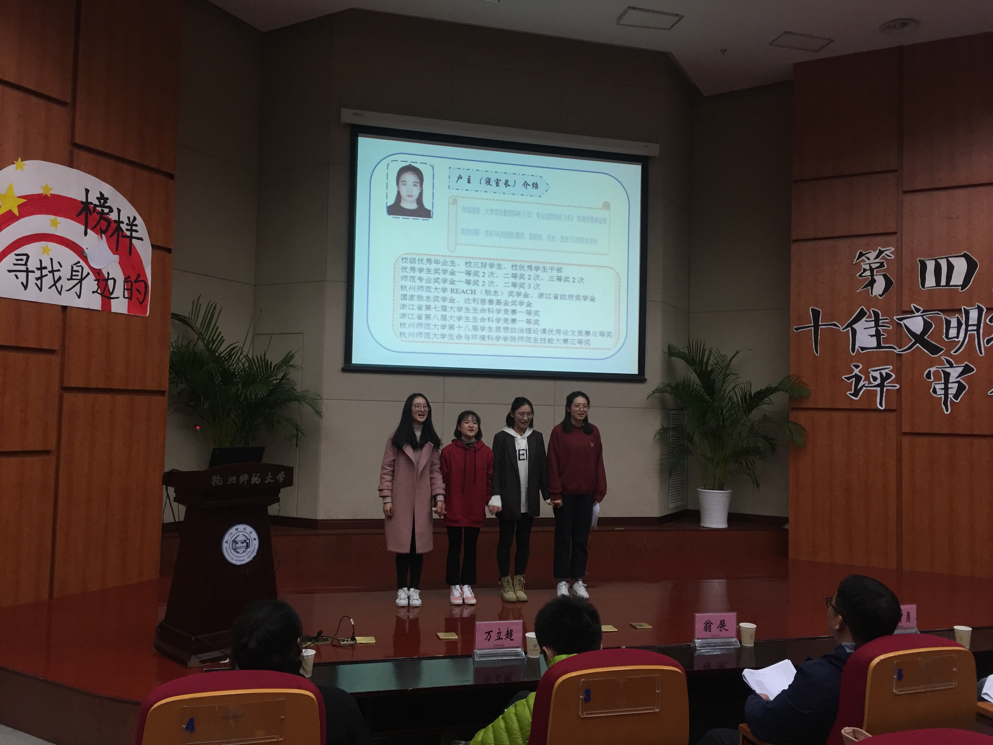 2-319寝室由寝室长滕童莹,寝室成员张露、赵晓超、徐小琪、宣祎婷、伊艳艳六位同学组成。在历年的寝室评选中,2-319寝室曾多次获得校特色寝室与文明寝室的称号,自觉遵守寝室有关管理规定和要求。在思想方面,寝室成员自觉学习党和国家的方针政策,寝室六人中现已有三人成为预备党员,两人为入党积极分子,一人为共青团员。在学业方面,寝室成员在班级中担任班长、副班长、学习委员、组织委员、文艺委员等职务。大学期间六人均获过三等及以上优秀学生奖学金,二等及以上师范专业奖学金,更有三人获REACH(励志)奖学金,三人获省政府奖学金,两人获国家励志奖学金。寝室成员曾在全国大学生“挑战杯”竞赛中取得一等奖的好成绩,于浙江省生命科学竞赛中获得一等奖4项,二等奖1项,并且寝室成员还积极参加新苗、国创等项目并顺利结题。作为大四的毕业生,寝室共有4人被评选为校级优秀毕业生,其中2名为省级优秀毕业生。寝室2名成员成功获得院内保研资格,并已成功保研中国科重庆时时彩 、浙江大学,另有一名成员获得省师范生技能大赛一等奖,目前正认真准备国赛。