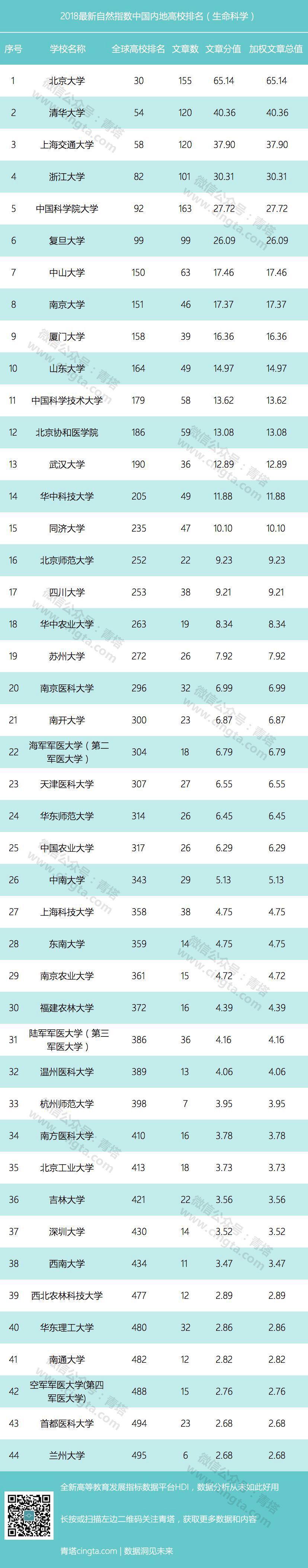 附:最新自然指数中国内地高校生命科学学科排行榜