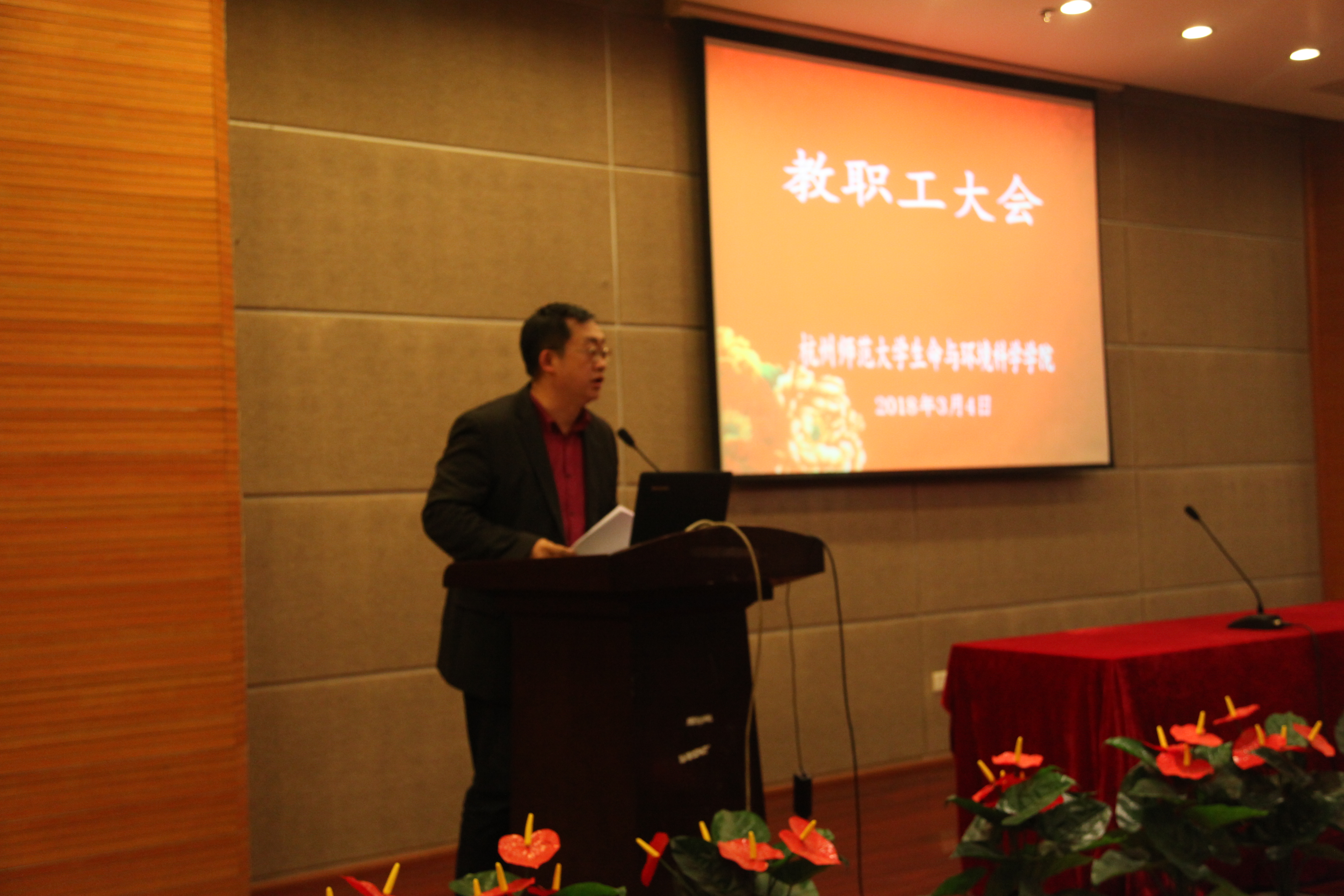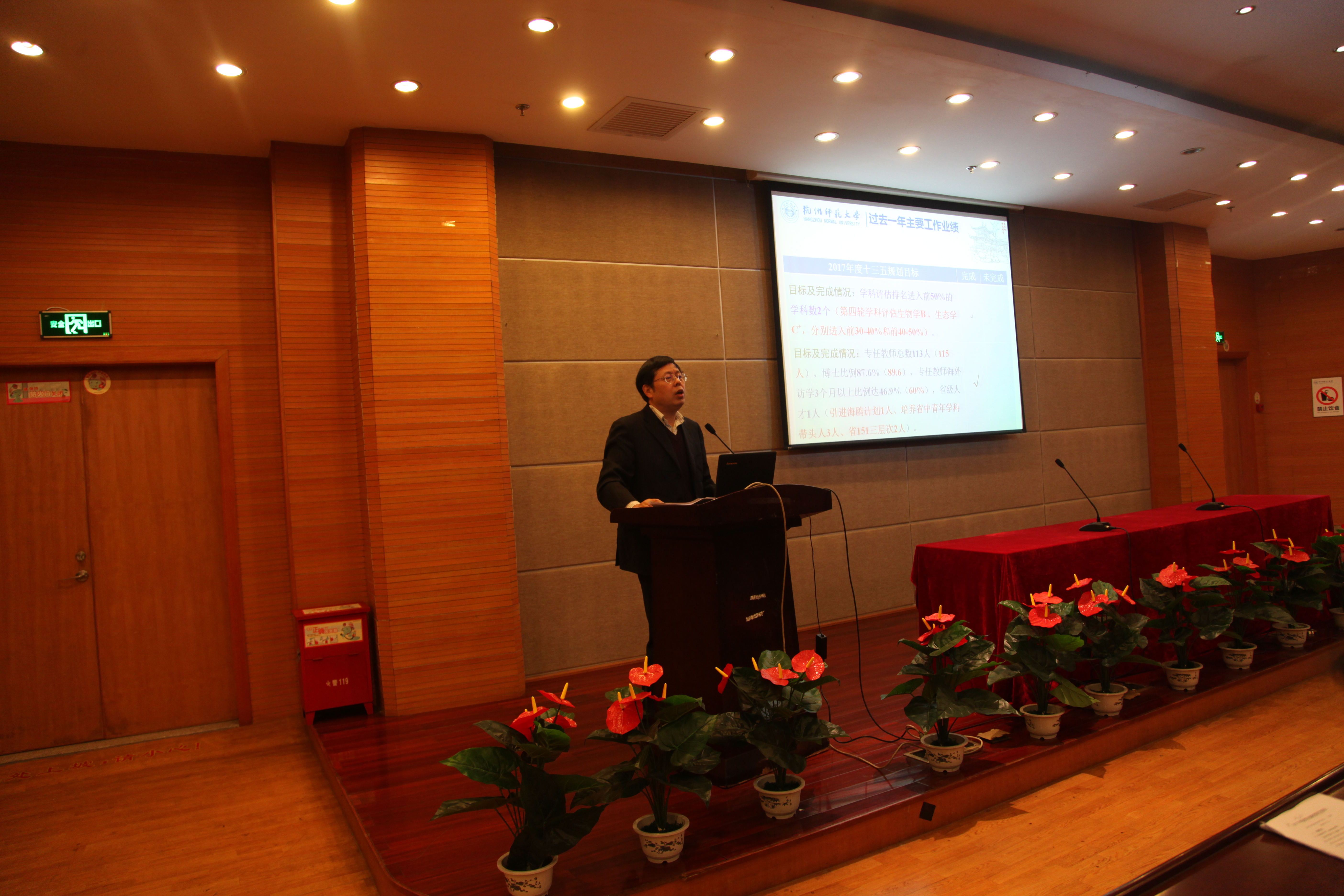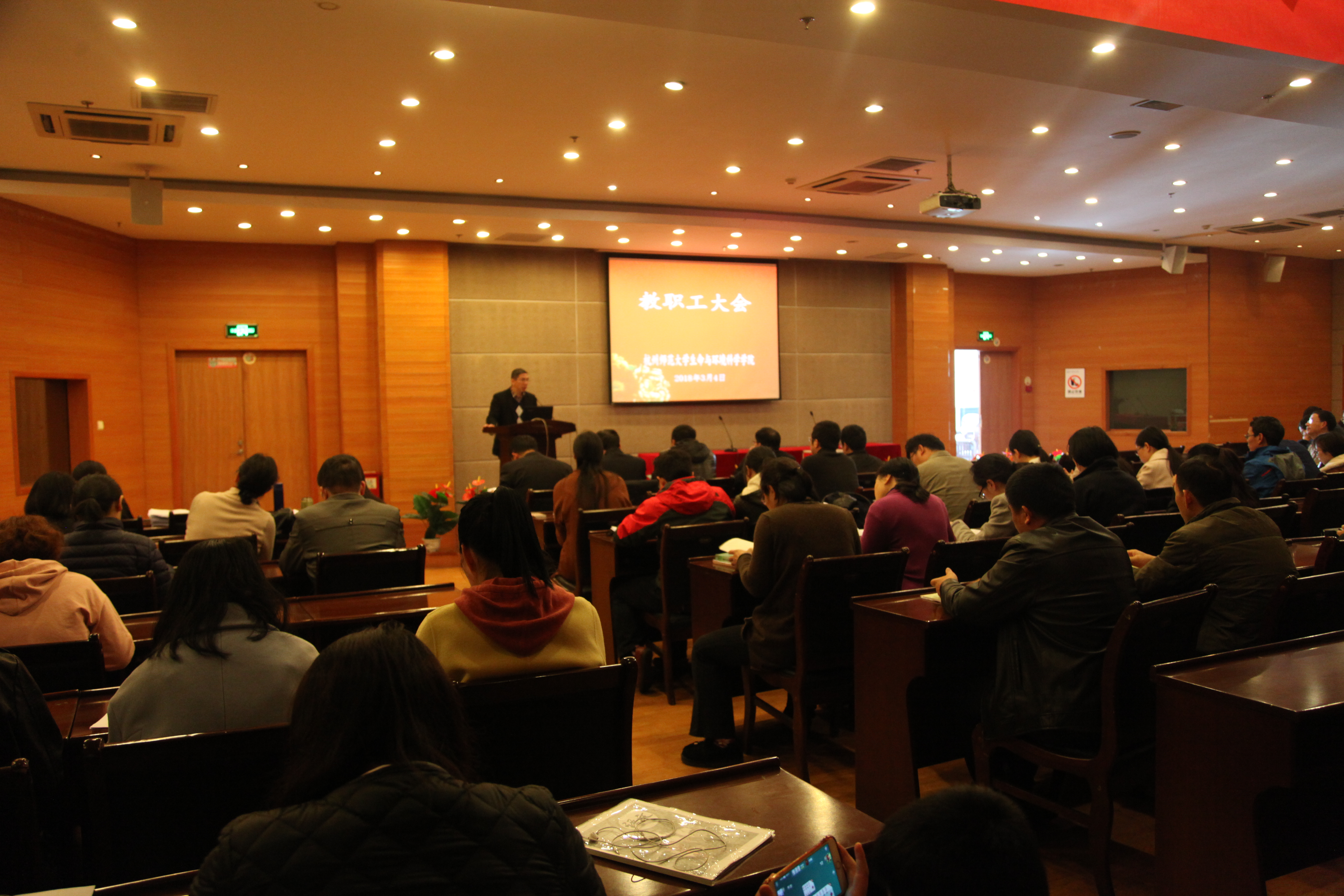 其后,王院长向全体教职工传达了校党委书记陈春雷在重庆时时彩 2018年工作会议上的重要讲话精神,并对过去一年工作进行了回顾,对上学期重庆时时彩 完成的主要工作进行汇报,并对存在的问题进行了分析,提出了新学年行政工作要点,强调重庆时时彩 工作要以规划为引领、人才为抓手、学科为龙头,积极充实内涵,寻求新的突破,勉励大家新的一年群策群力,助力重庆时时彩 新的发展。