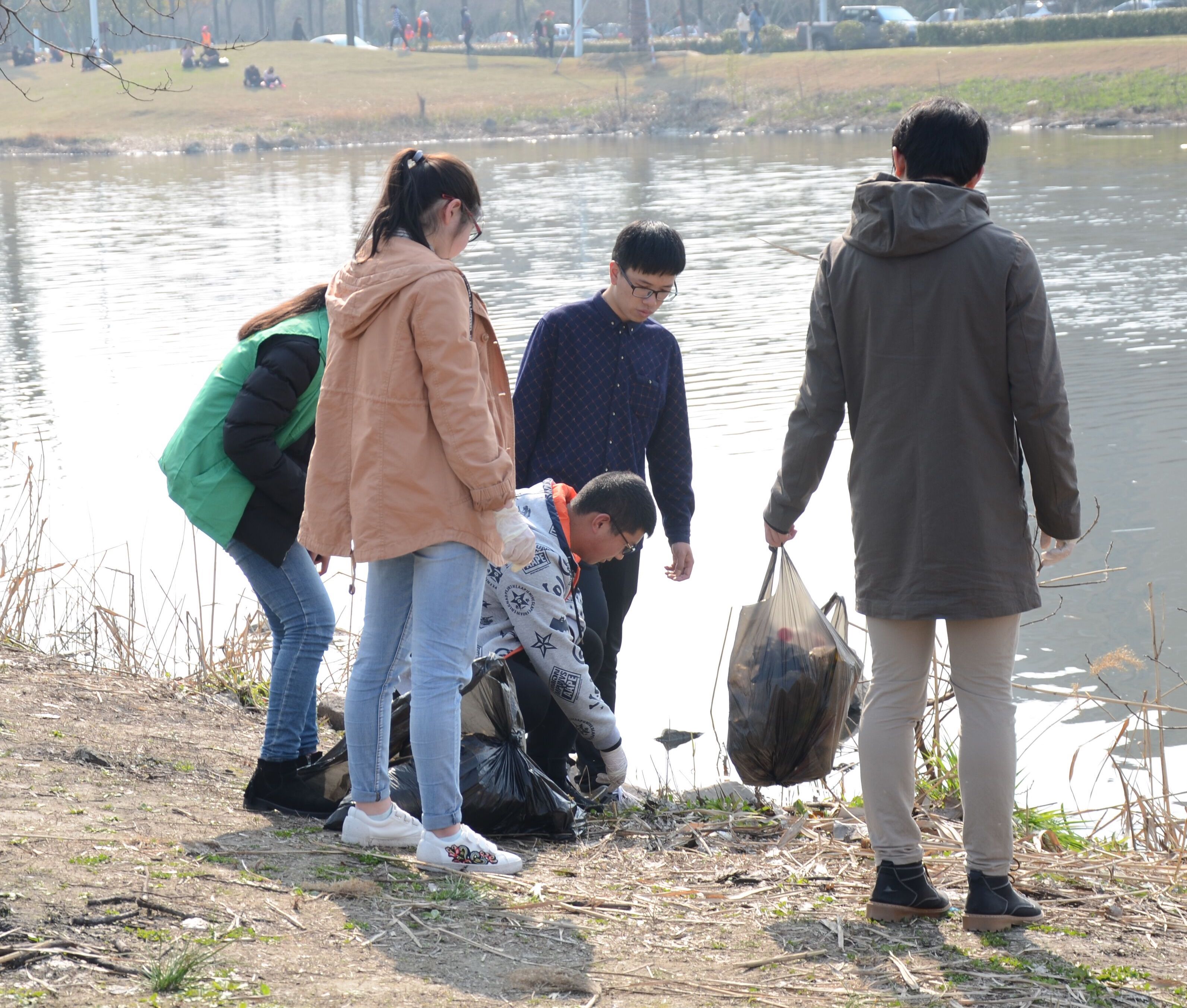 此次志愿活动将志愿者分为三个小队,分别清理三个不同的区域,志愿者手拎垃圾袋,沿江边拾捡草坪和小道上的废弃物、纸巾、果皮、食品袋等各种垃圾。路上的用手捡,沟边的用夹子夹,本着“服务社会、服务他人”的宗旨,大家都干劲十足,发扬了不怕脏、不怕累的精神。大家互相配合、相互协助,热情高涨。志愿者们的热情也感染了周边游玩的居民,不少小朋友也主动帮助志愿者们清理垃圾,积极地将雷锋精神和实际行动联系起来。此次活动进行一个多小时后,每个志愿者的手中都“战果累累”,清理活动也到此结束。