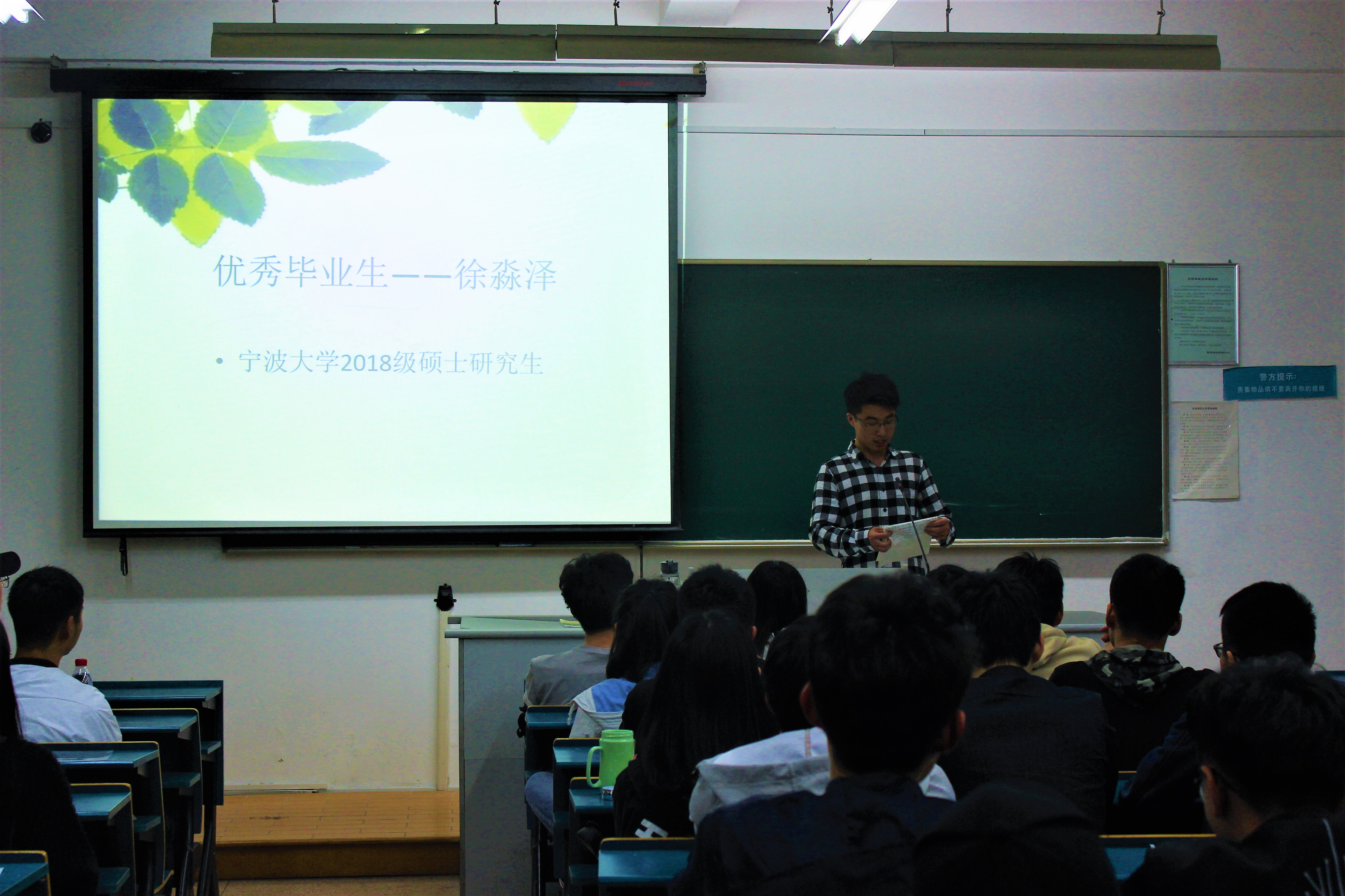 当台下的同学们思考片刻后,宁波大学2018级硕士研究生徐淼泽上台为同学们解答了一个困扰着众多考研生的困惑,即跨专业考研,他讲到在准备跨专业考研前,首先要弄清所选专业要考的科目,在重点学习专业课内容但同时也必须认真对待英语、政治等统考科目。他曾在校期间获得多个国家级、省级奖项,如2016-2017学年国家奖学金、浙江省第九届大学生生命科学竞赛二等奖、浙江省第十五届挑战杯·富阳大学生课外学术科技作品竞赛二等奖、第一届全国大学生生命科学竞赛三等奖等。