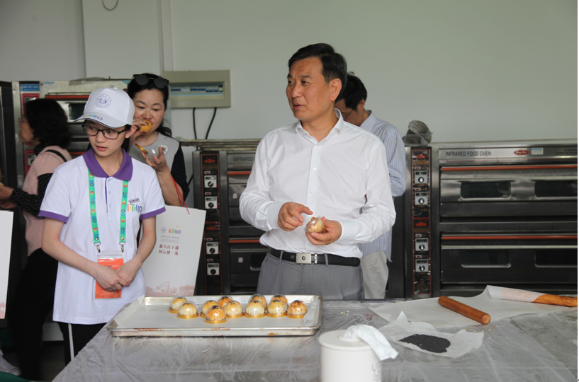 校友品尝现场制作的蛋黄酥