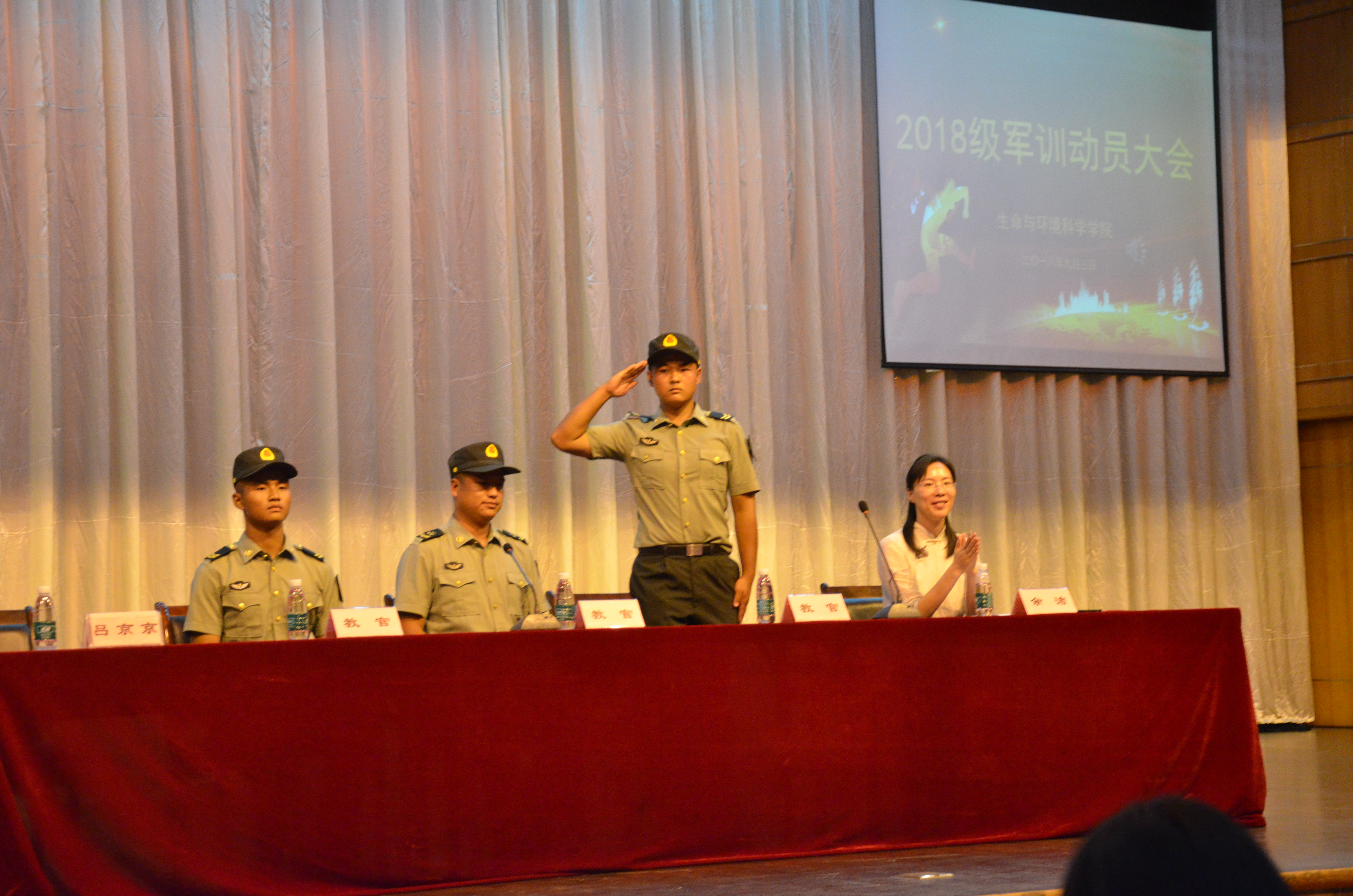 全体奏唱国歌拉开此次大会的序幕。国歌奏唱完毕,由教官代表欧教官上台发言。欧教官向即将参训的全体新生提出殷切的希望:欧教官强调希望参训同学在本次军训中能强化组织纪律观念,发扬英勇顽强、吃苦耐劳的军人精神,敢于锻炼、敢于吃苦、服从命令、听从指挥,欧教官表示会把学生当成自己的兵来训练,达到强体能、练毅力、明纪律的目的。