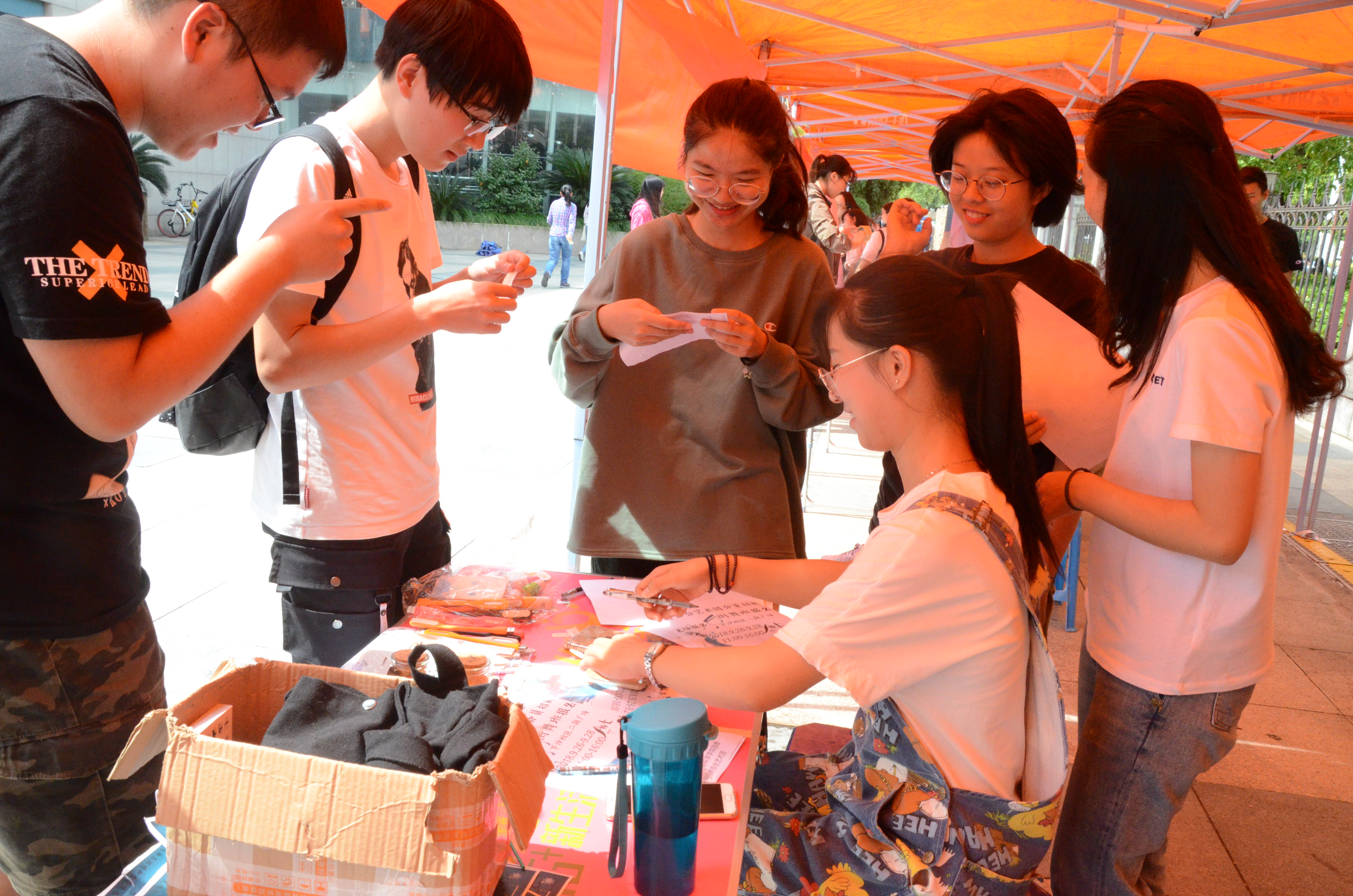 同学们都积极地穿梭在人群中,了解着自己感兴趣的社团,而每个社团人员也热情地介绍着,希望招收更多的新成员。活动氛围越来越高涨,同学们脸上洋溢的笑容甜蜜了所有辛苦招新的社团工作人员!