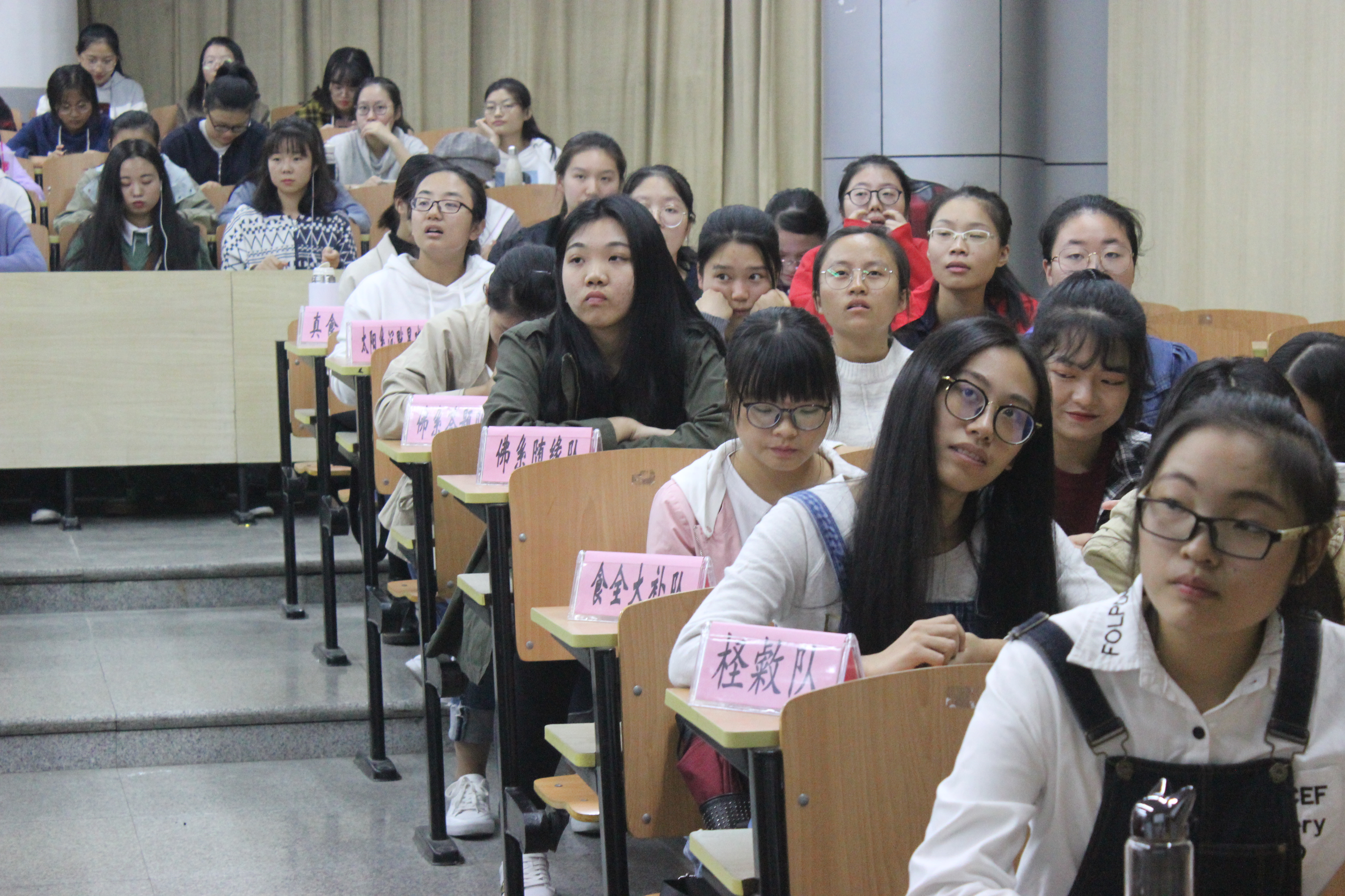 首先,主持人隆重地介绍了出席本次活动并担任裁判的嘉宾,他们是:周婷老师,俞春娜老师,戚琴同学,陈峥峰同学,孙南飞同学。接下来参赛队伍也与大家一一见面:柽敹队、食全大补队、佛系随缘队、佛系答题队、太阳系沉默星球队以及真食力队。