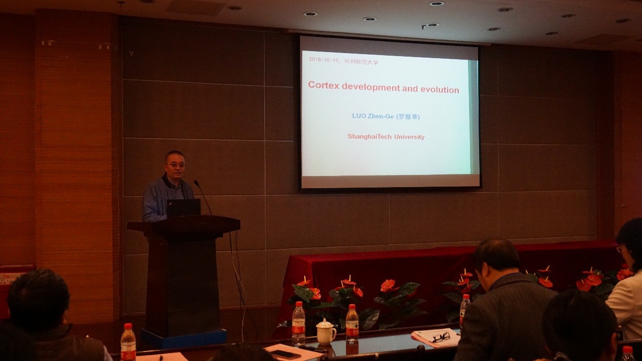 下半场,上海科技大学罗振革教授作了题为“Brain development and evolution”的学术报告,浙江大学沈颖教授作了题为“Cerebellar development, dysfunction and diseases”的学术报告。罗振革教授从进化的角度切入,通过分析小鼠、猴子、猩猩和人的基因差异,发现猩猩和人特有的TBC1D3基因(该基因在人基因组中具有更多的拷贝数)可以诱导小鼠大脑产生更多的基底层神经前体细胞,并是小鼠大脑皮层出现人脑的的沟回样结构。沈颖教授报告了Lgi1、Numb/Numbl等基因对小脑发育的影响,并证明小脑发育和电生理水平的改变会对小鼠的学习、社交、抑郁等行为产生影响。
