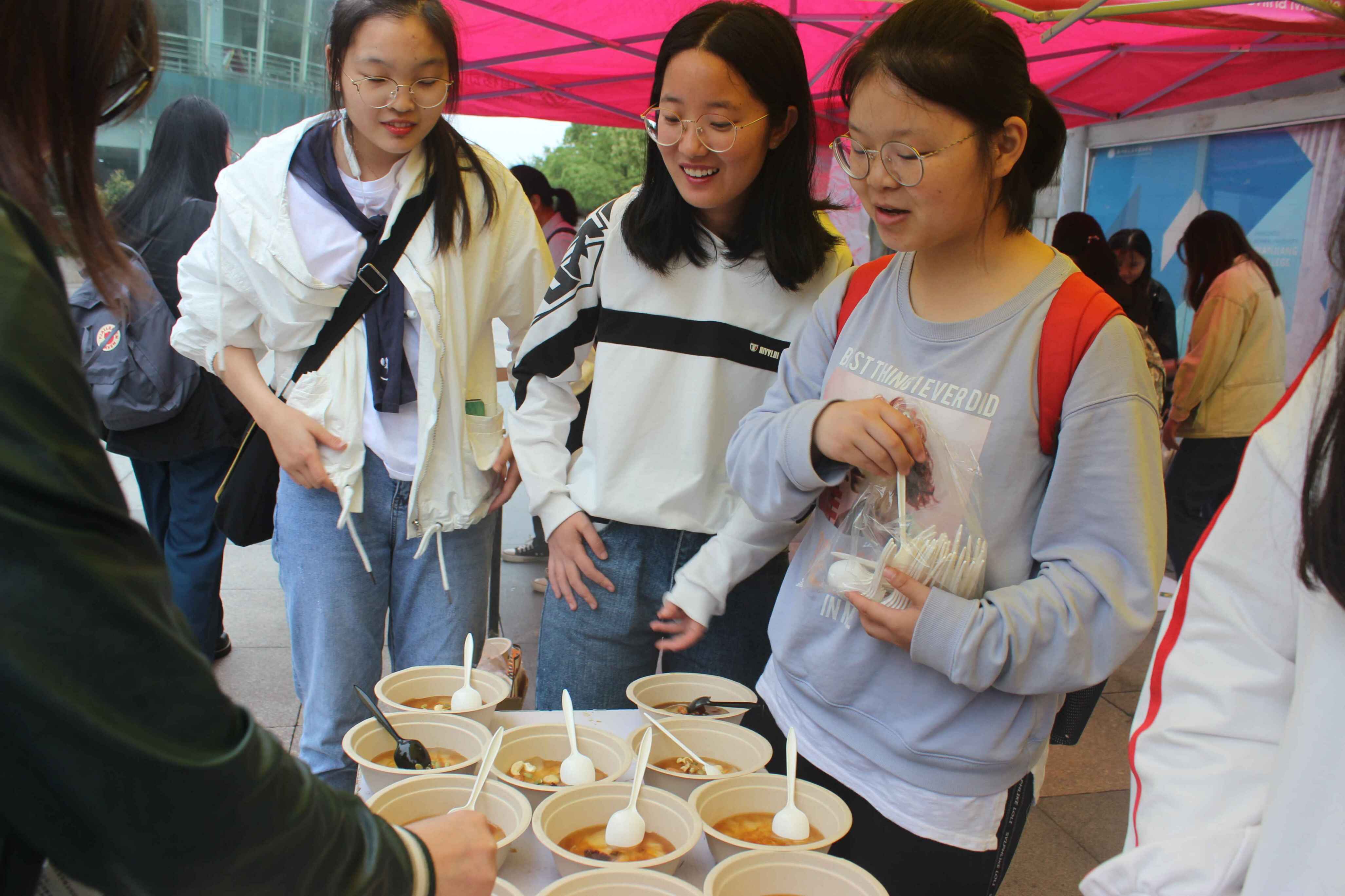 同时重庆时时彩 学生会体育部、学术科技部、办公室的干事们贴心的为同学们现场制作了冰粉,且在朋友圈等社交平台上发布推广使用可降解材料的同学可尝试制作冰粉,现场所用的碗和勺子均为淀粉类可降解材料制品。