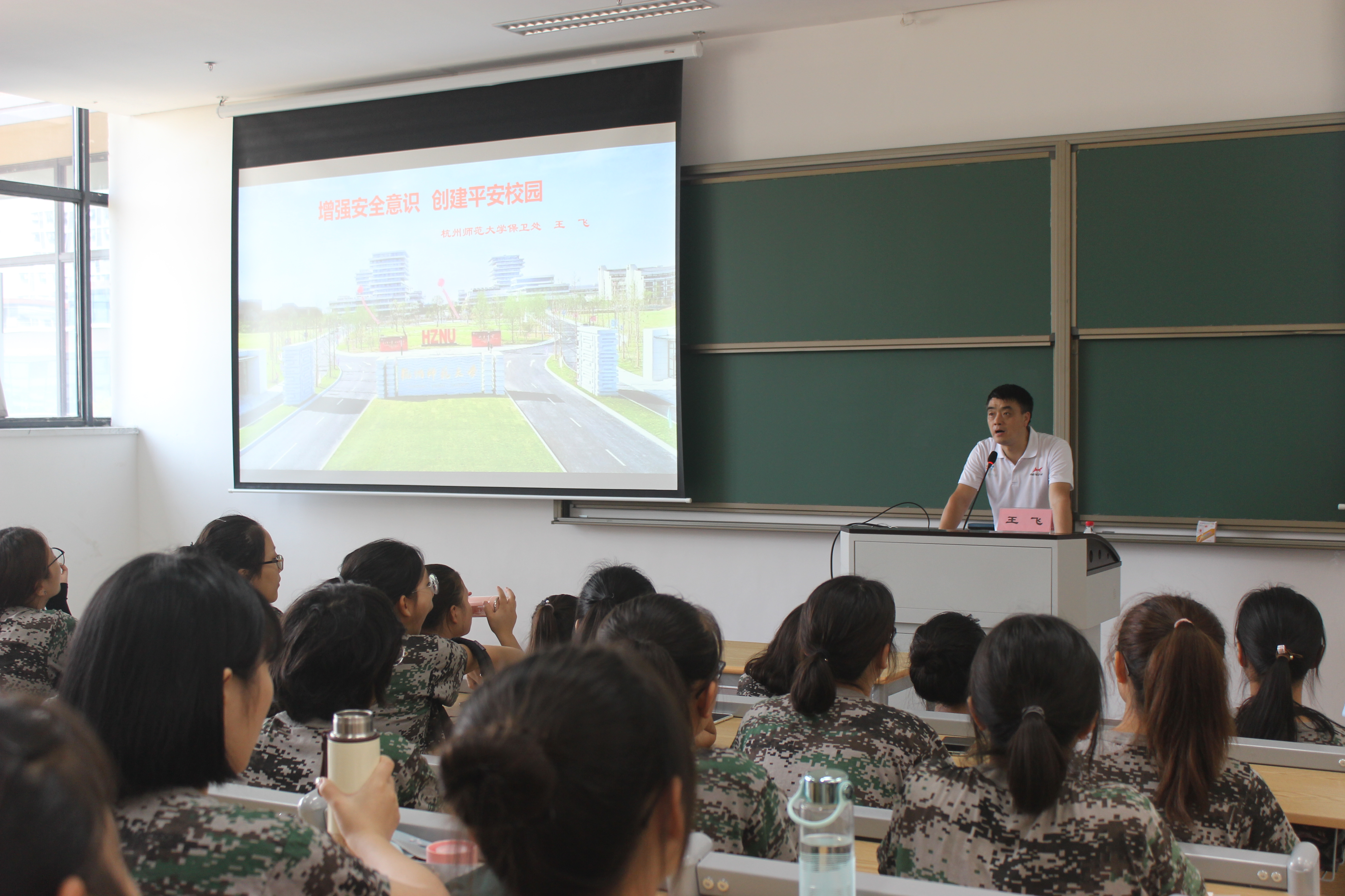 王老师从“消防安全,人人有责”、“政治安全,时刻注意”、“交通安全,重在防范”、“治安防范,群策群力”四个方面出发向同学们说明了如何构建“平安校园”。