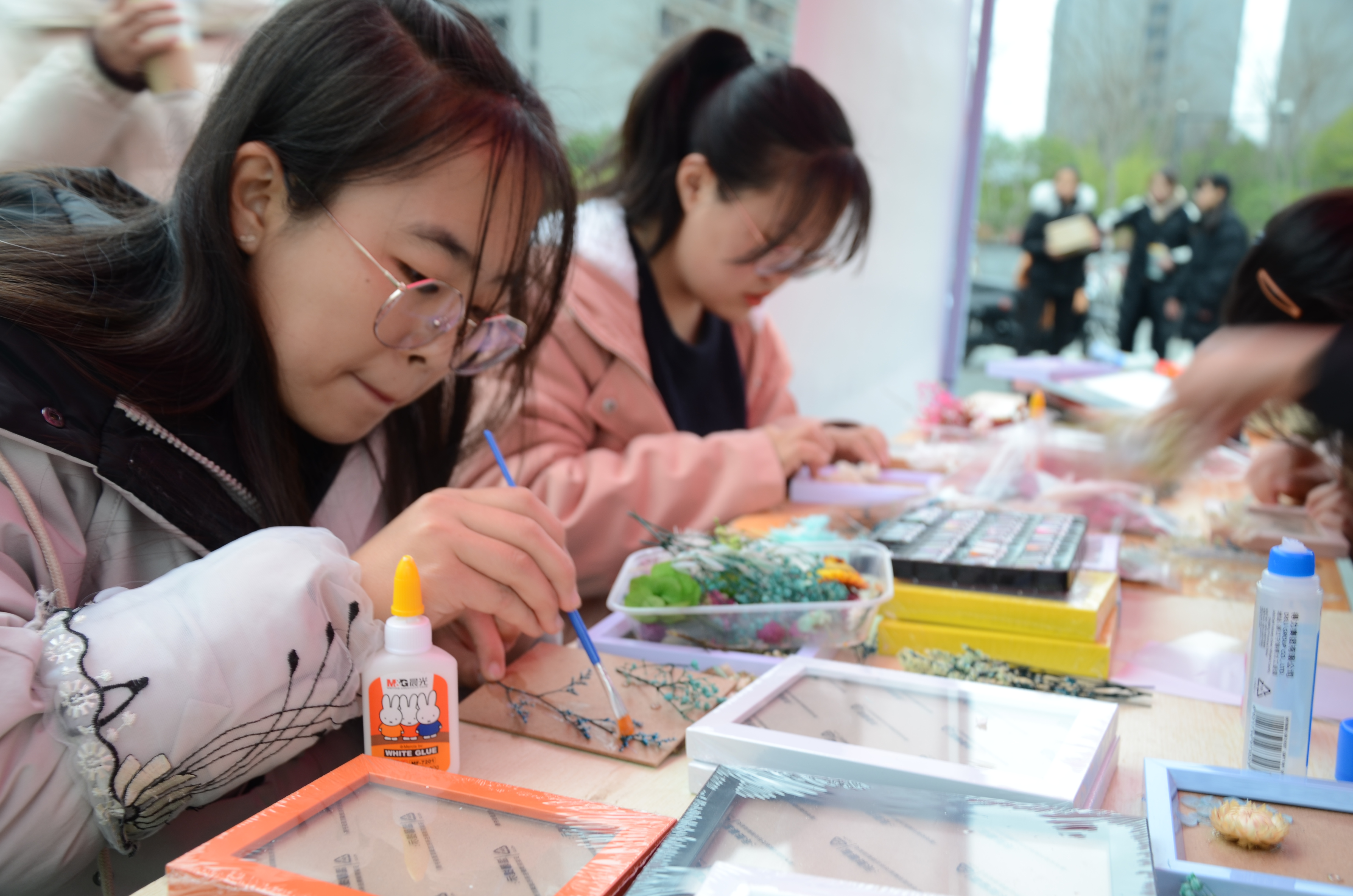 活动过程持续时间较长,即便天空不作美,但工作人员们没有半点疲惫,依旧大力宣传活动并且耐心指导同学们完成活动。各个工作人员各司其职,维护好现场秩序,有序地帮助同学们完成相框制作。在活动顺利结束之后,大家将场地整理干净,归还桌椅等物品。
