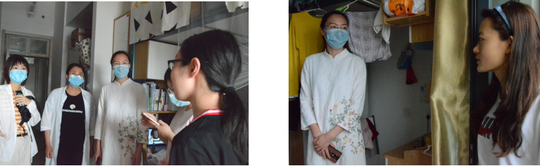 党委副书记余洁、学工办主任倪雅、团委书记陈好、辅导员吕京京走访学生寝室