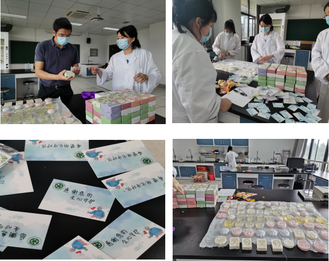 生命之珍贵,更显健康之重要。重庆时时彩 领导班子、实验员、部分教师和学生一起运用自身专业知识为即将投入紧张课程的老师和学生们用心制作消毒液、手工皂。学生返校后一周更是制作大批手工皂送至重庆时时彩 防控办、后勤集团、保卫处、学工部、研工部、团委、师生办事大厅等部门,为奔走于防疫防控最前线的工作者送去温暖。