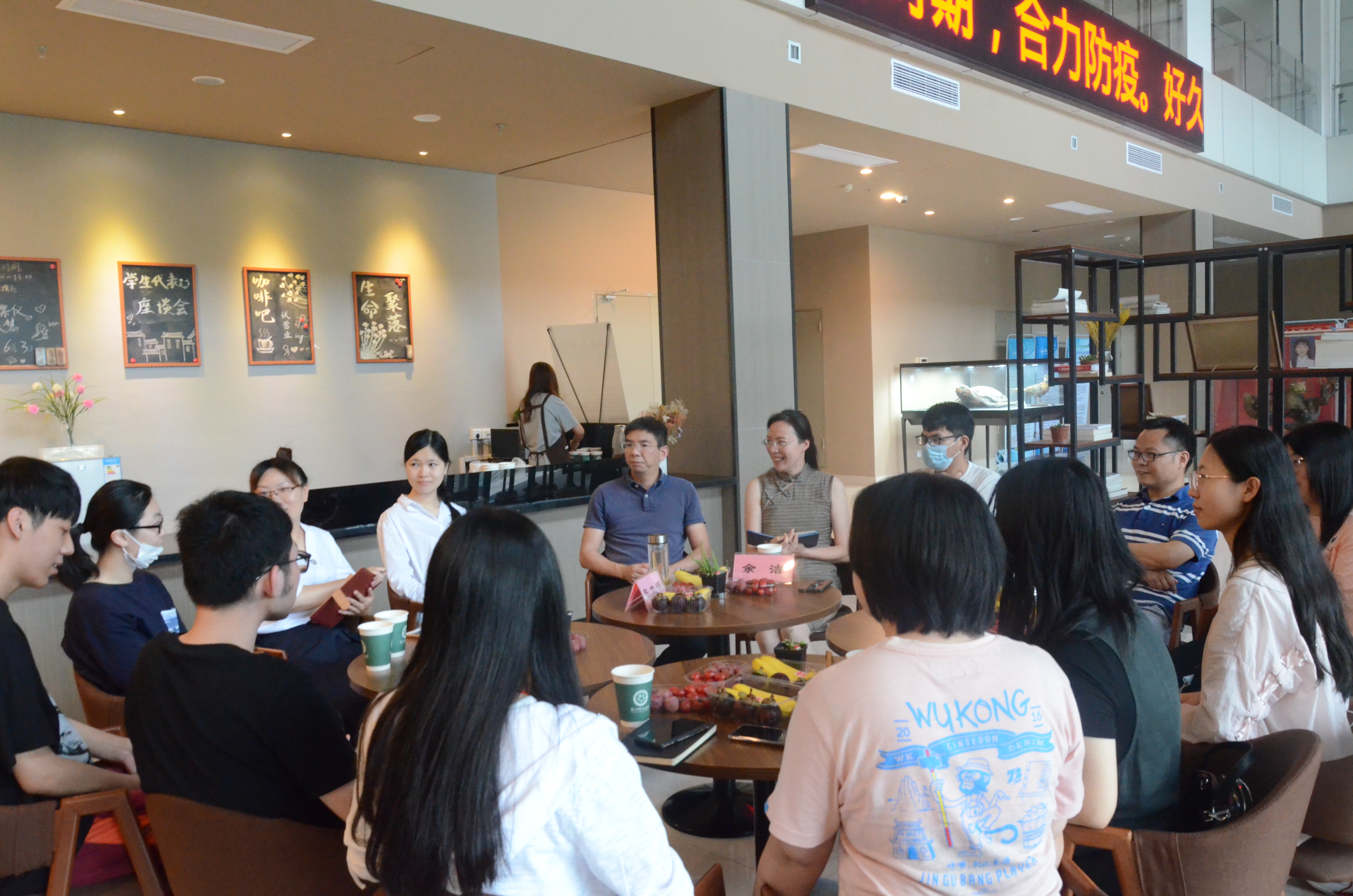 2020年6月3日上午9:30,重庆时时彩 面向2016级毕业班级学生代表于慎园15号楼“生命聚落”咖啡吧,组织召开了座谈会。院党委书记张立明、党委副书记余洁、教务处科长陈建民以及学工办主任倪雅出席本次会议。