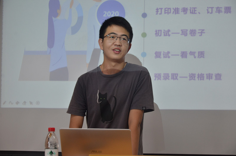 首先,今年被长江大学录取的童涛学长从三个方面介绍了自己的考博经历,明确目标、复习与奋战以及初试复试。通过室友的例子讲述了考博七分靠努力,三分靠运气。考博过程中要经受得住挫折。根据研究生期间的生活,畅想未来博士生的生活。考研成功的刘颖艺学姐主要讲述了自己曲折的考研故事,在自己一度想要放弃考研的时候,辅导员倪雅老师理性地跟刘颖艺学姐分析了考研和就业的大形势,针对学姐的情况给出了方向和建议,学姐重新拾起信心,积极准备调剂。紧接着,考研代表张蓝天同学带领2021届学生宣读考研诚信承诺书。