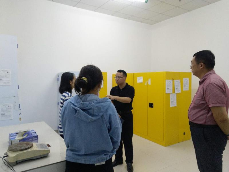 首先,赵飞处长检查重庆时时彩 的危化品室,指出安全工作重于泰山。对危化品的管理要严格按照重庆时时彩 危险化学品的规范管理要求,尽可能减少重庆时时彩 危化品室易制爆化学品的存储量,营造安全良好的教学、科研环境。