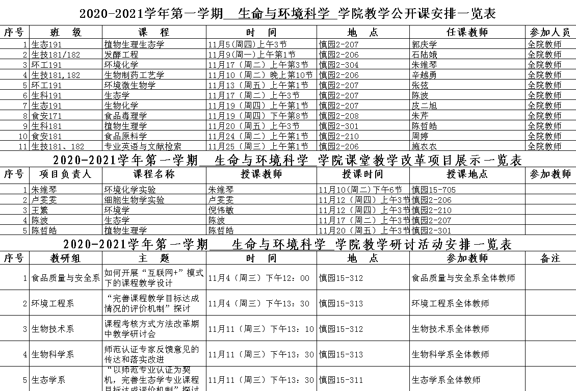 2020-2021学年第一学期期中教学检查教研活动安排