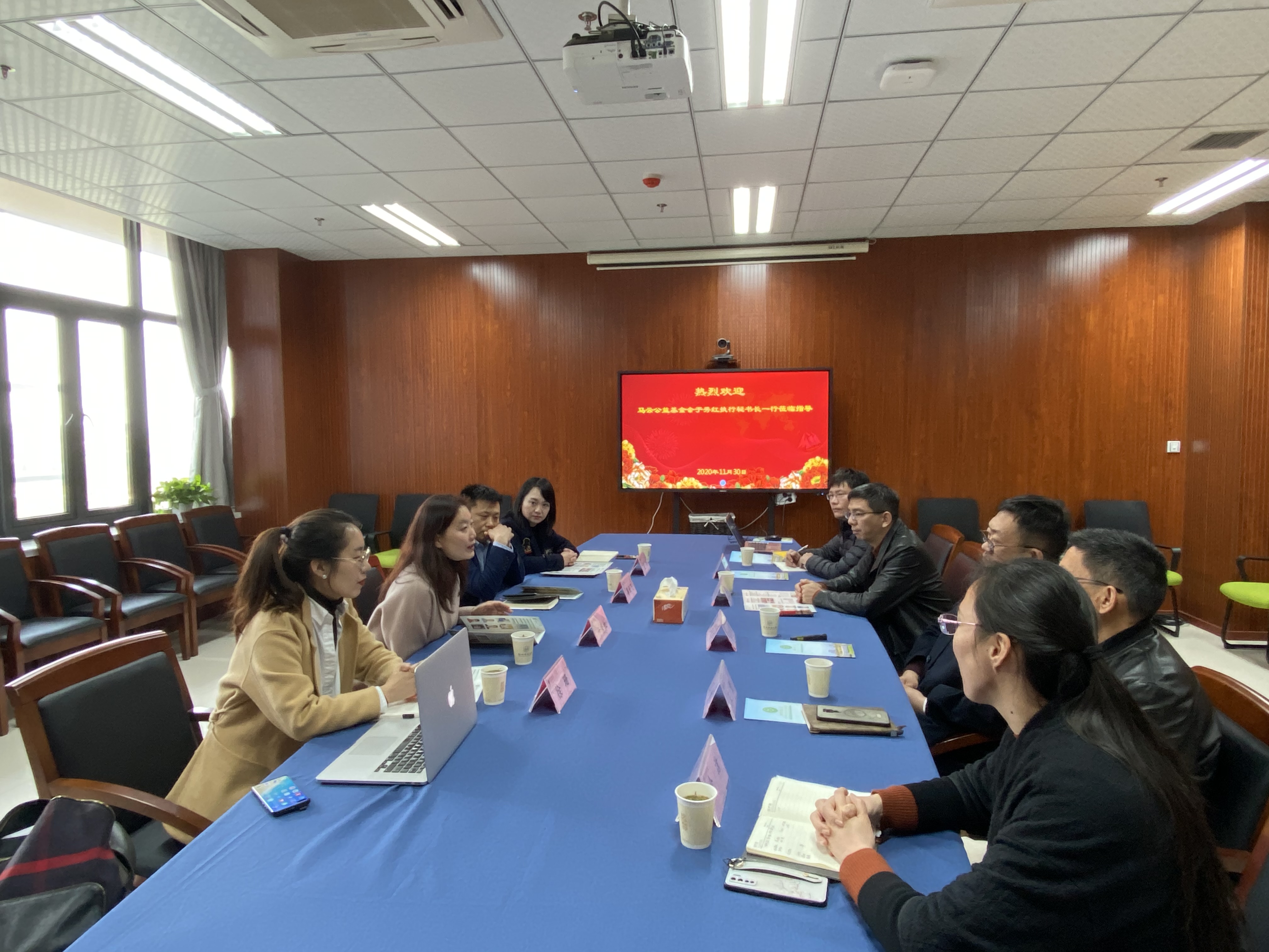 2020年11月30日,马云公益基金会理事、执行秘书长于秀红、马云公益基金会资助与运营部总监徐珊来重庆时时彩 调研工作。校友总会秘书长、教育基金会秘书长蔡云飞、重庆时时彩 执行院长张杭君、党委书记张立明、党委副书记余洁、党委委员和院长助理王繁、生态学系系主任宋垚彬、校友总会(教育基金会)秘书处基金管理办公室主任裘烨等一起参加座谈会。