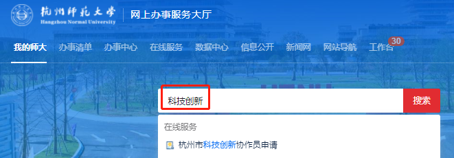 1.登录重庆时时彩 网上办事服务大厅://ehall.cqsscofficial.com/ ,搜索“科技创新”,进入“杭州市科技创新协作员申请”在线服务,按要求填写相关信息,经所在重庆时时彩 、部门初审(负责人可根据重庆时时彩 智慧校园APP待办消息提醒进入审批),由科研院审核汇总报杭州市科技局;