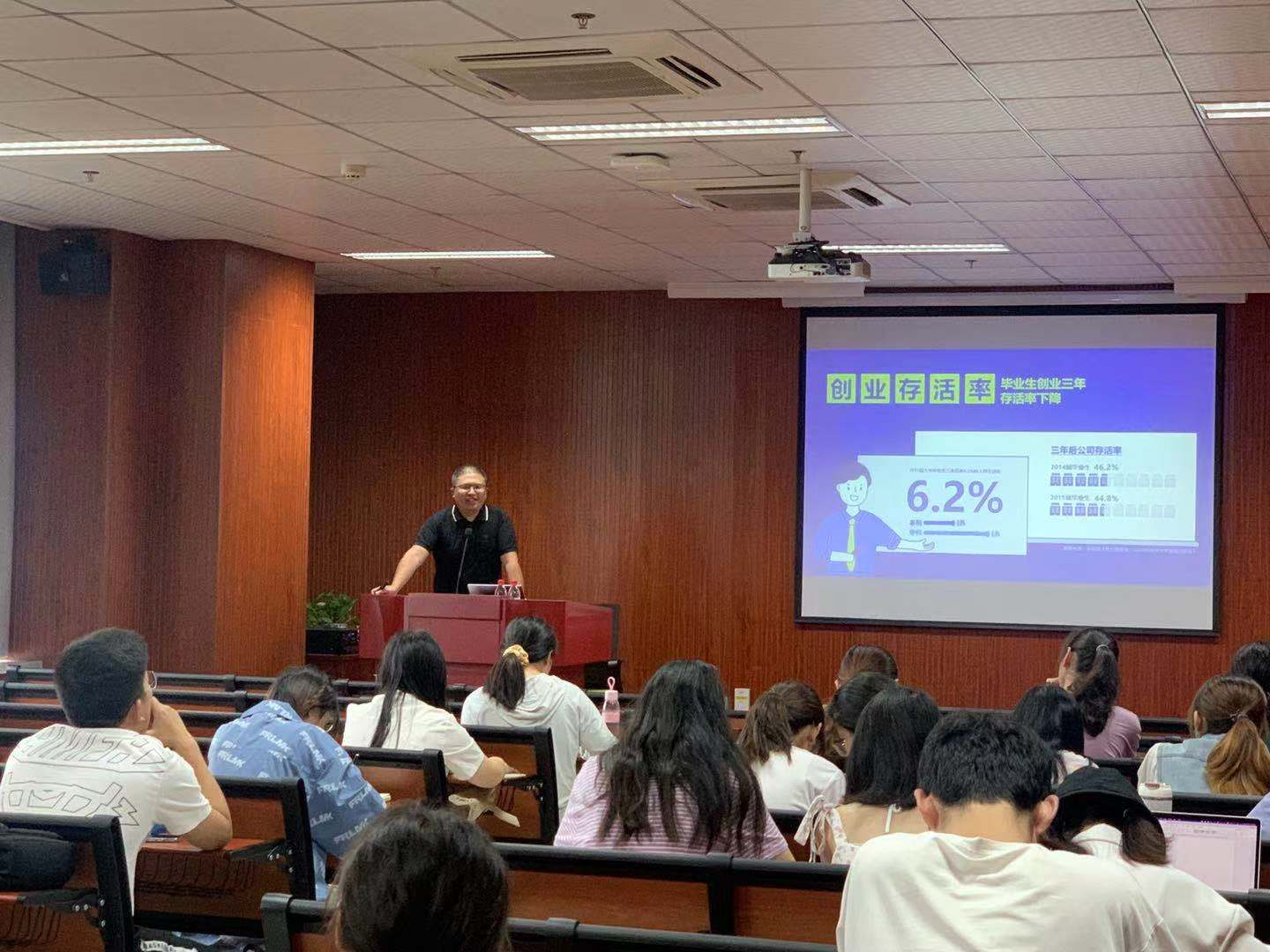 姜华博士展开了以“创·人生”为主题的创业课程。他先对创业过程中的多个名词进行解释区分,并结合具体实例加深同学们对课程观点的认识。在课程的最后,他还将自己准备的书籍送给同学,意以激发同学们的创业热情。