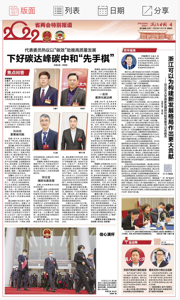 王慧中教授在省两会上热议“碳效”被省两会特别报道收录