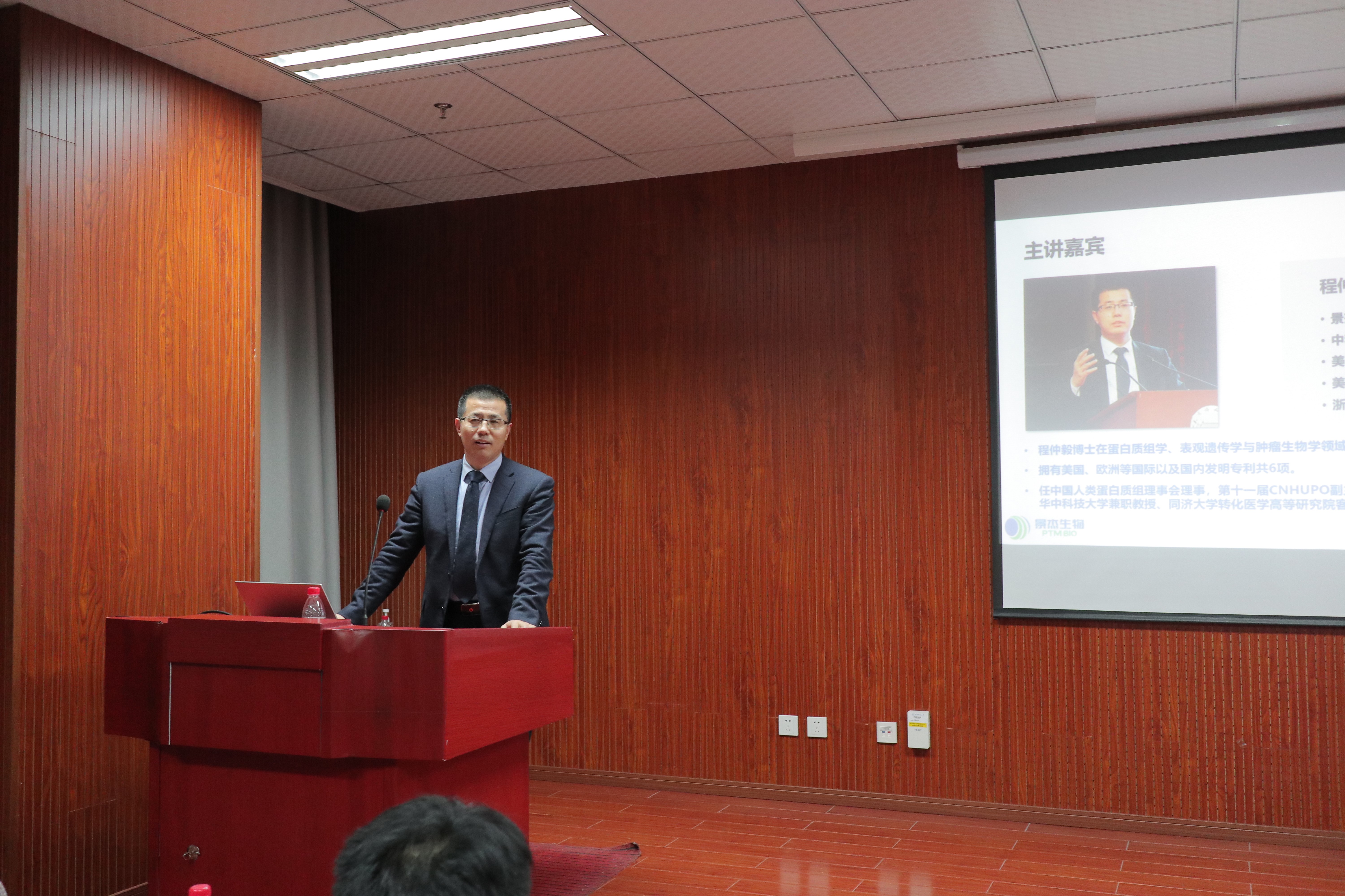 当晚,在慎园15-309举行了景杰生物校内宣讲会。程仲毅先生对公司概况以及就业情况进行了基本的介绍,同学们也积极地向程仲毅先生提出疑问。