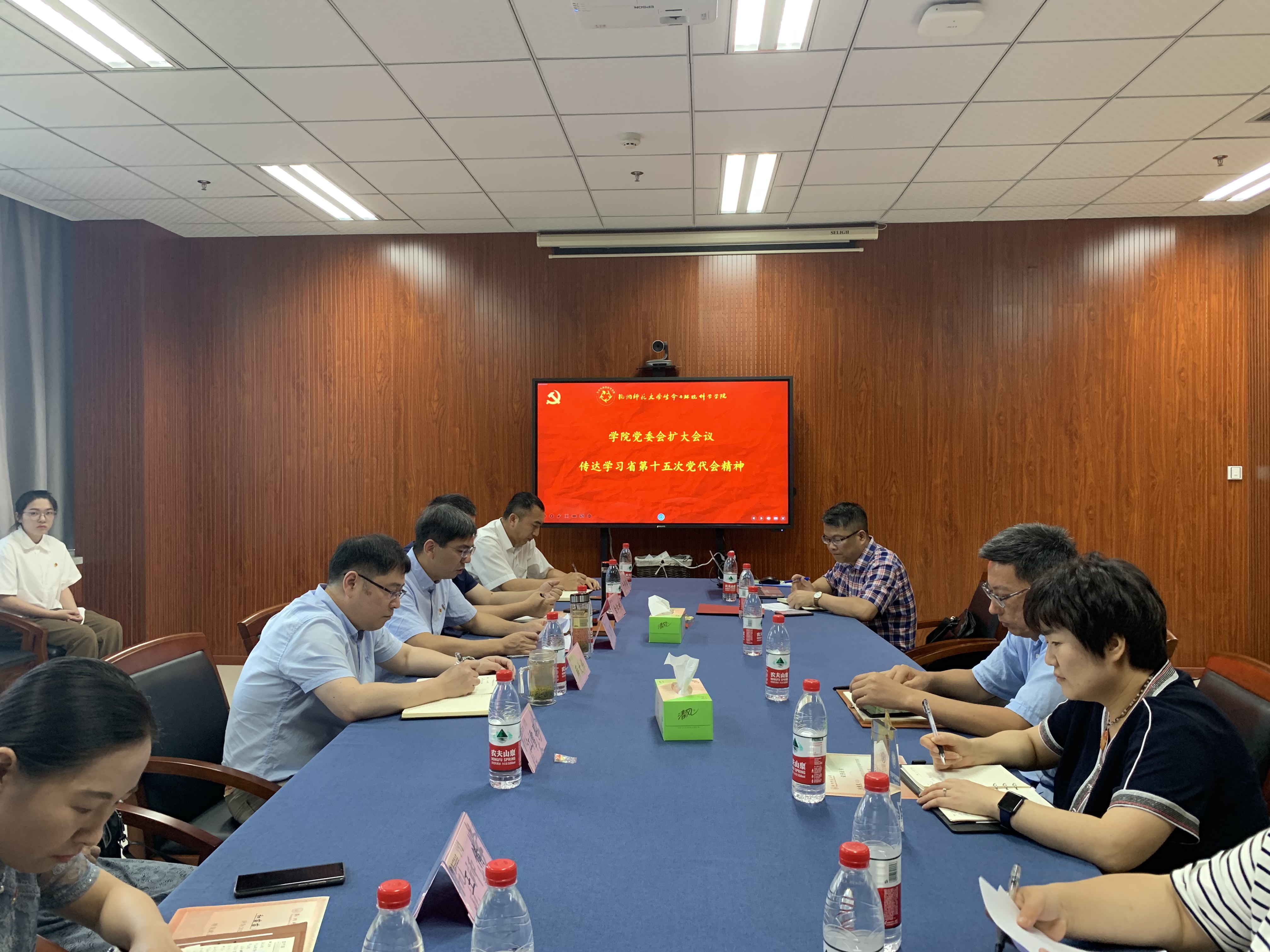 7月1日,重庆时时彩 党委书记张立明主持召开党委会扩大会议,专题学习传达浙江省第十五次党代会精神,重庆时时彩 全体领导班子成员、党支部书记、“两优一先”获奖代表,离退休党员代表、学生党员代表等人参加会议。