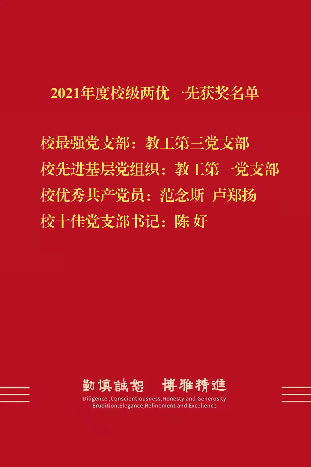 喜报—2021年度校级两优一先获奖名单