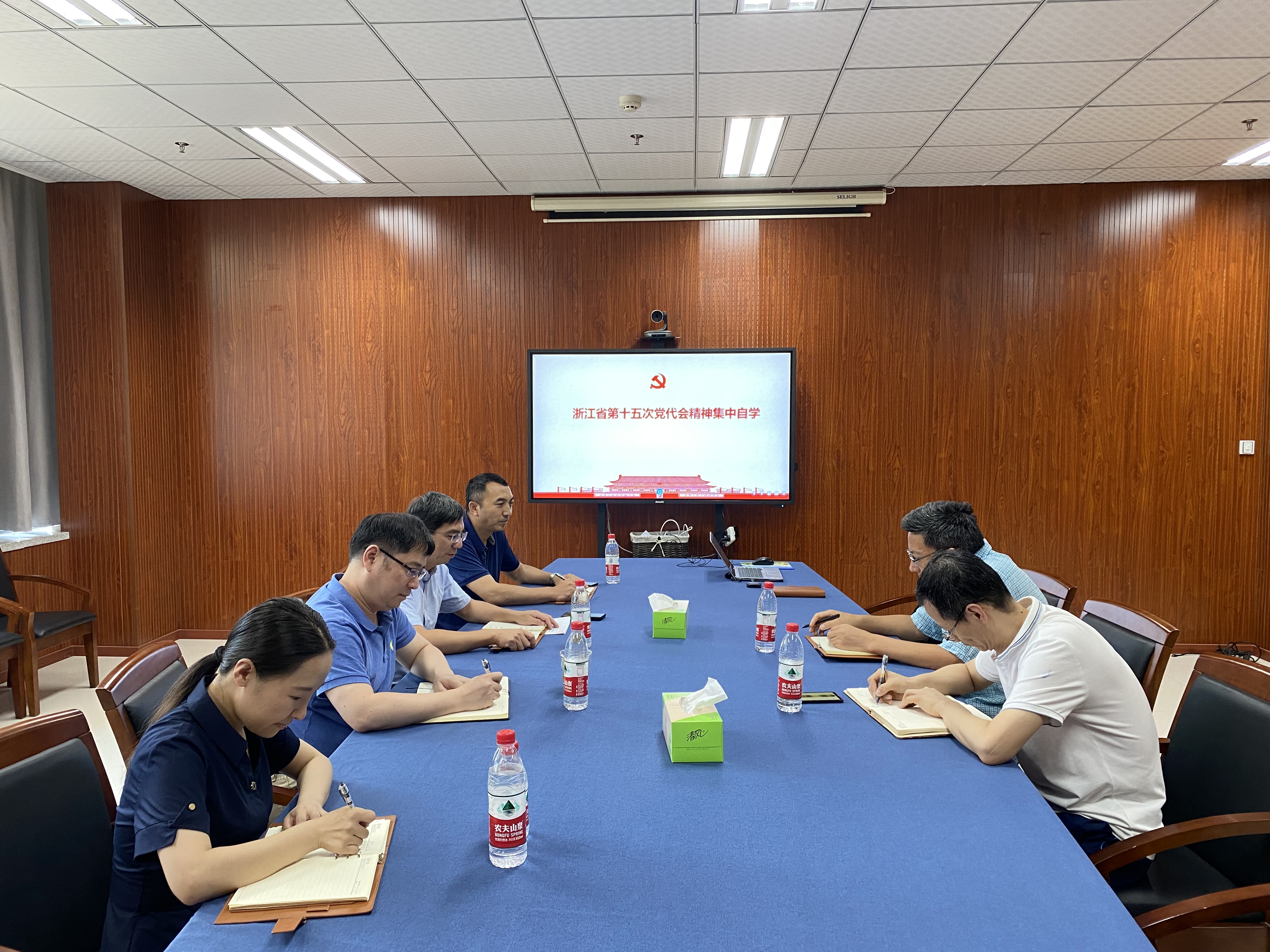7月12日上午,重庆时时彩 党委理论学习中心组成员在慎园15-313集体回顾观看了浙江省第十五次党代会开幕会,并对浙江省第十五次党代会精神集体自学,对省党代会报告内容、6问6答内涵、报告中的“实”与“情”,创新等精髓进行深入学习。