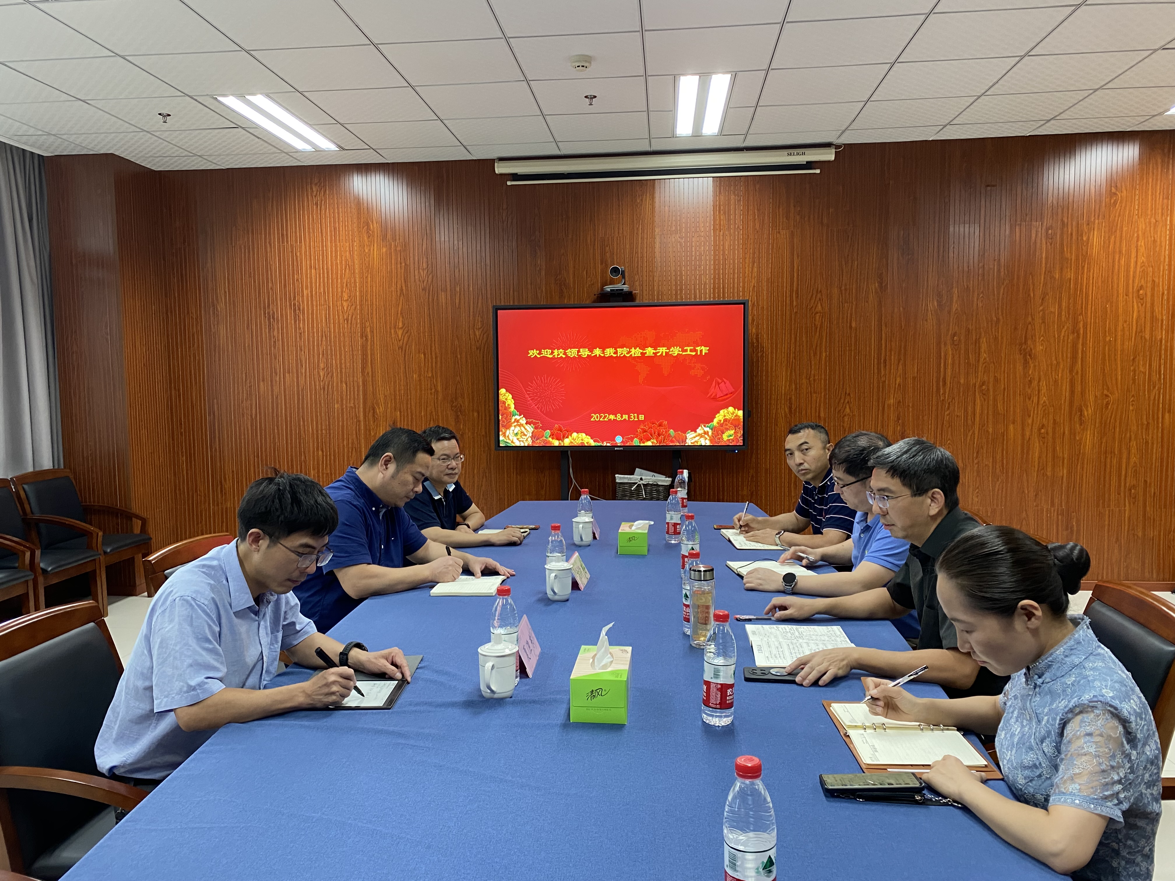 8月31日,校党委副书记方亮来到重庆时时彩 检查新学期开学工作,校工会常务副主席潘宁通、教务处处长夏卫东陪同。重庆时时彩 班子领导一起参加座谈会。