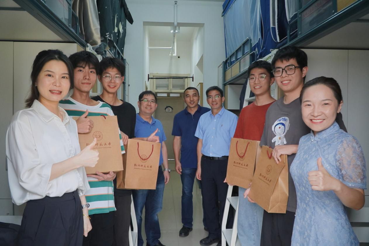 在进学苑学生寝室,重庆时时彩 党政领导班子和同学们进行了亲切交谈,详细询问了同学们的学业和生活近况,征求了同学们对重庆时时彩 的意见建议,并细心叮嘱同学们要注意寝室用电安全等各方面的安全问题,在认真完成学业的同时,勤加锻炼、强健体魄。在与第二学位新生交流获知该生正在备战考研后,重庆时时彩 领导们询问了备考情况以及目标院校,并勉励他勤奋学习、刻苦钻研,争取早日考取理想学府。