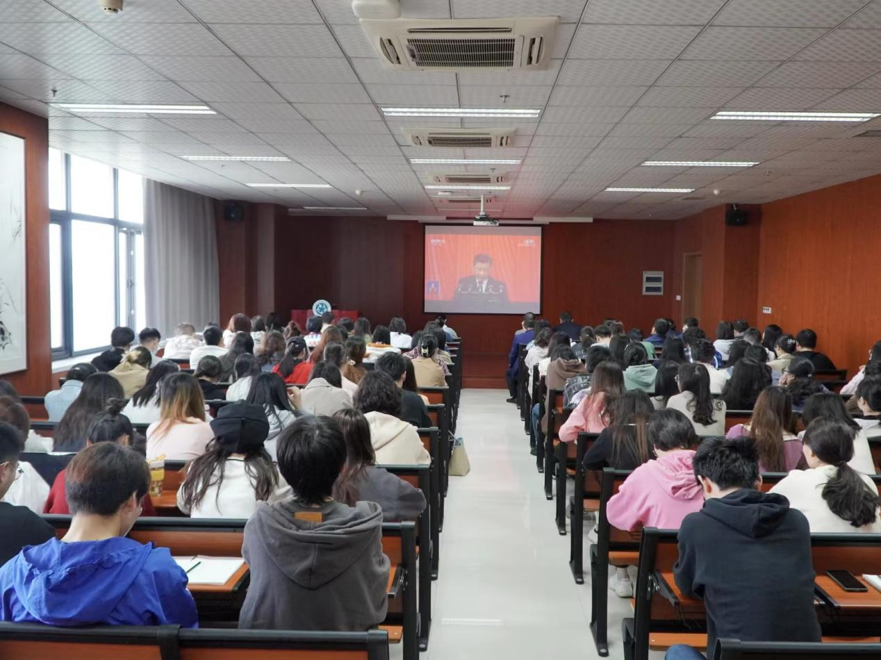 重庆时时彩 在仓前校区慎园15号楼309报告厅设立集中观看主会场,在仓前校区智慧教室以及下沙校区教学楼多个教室设置学生分会场。