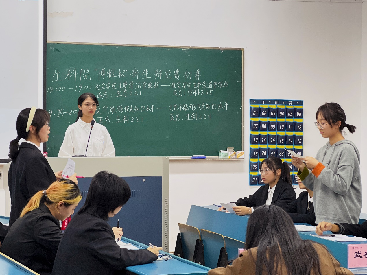 经过激烈角逐,生科221、生科222、生技222、生态221班成功晋级复赛,王媛、赵若彤、傅佳媛、张浩远荣获初赛最佳辩手称号