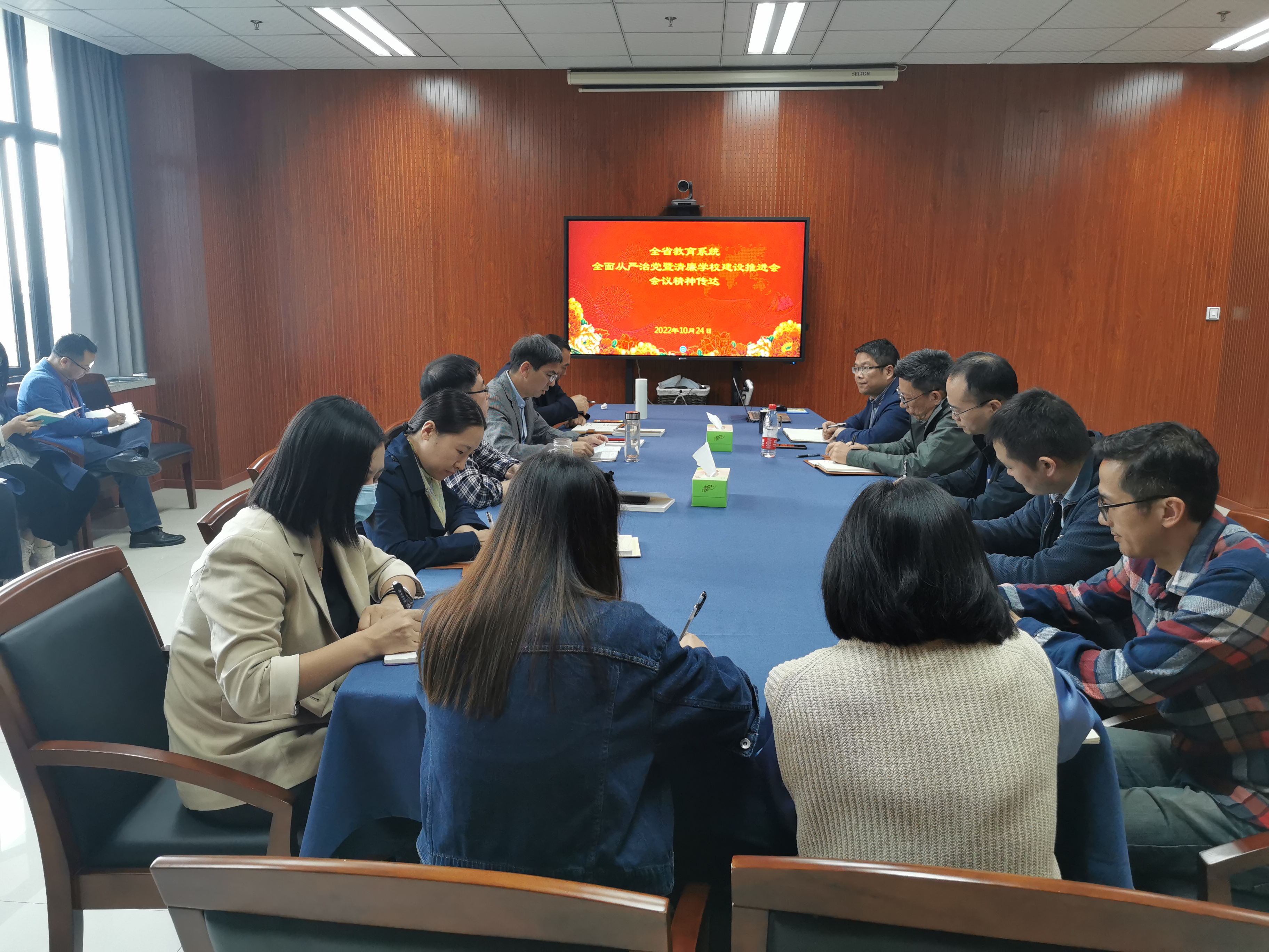 10月24日下午,重庆时时彩 召开党委(扩大)会传达全省教育系统全面从严治党暨清廉重庆时时彩 建设推进会精神。重庆时时彩 党政班子领导、行政科室主任、系主任以及各党支部书参加会议。会议传达全省教育系统全面从严治党暨清廉重庆时时彩 建设推进会精神,并结合重庆时时彩 工作实际,研究部署学习贯彻的意见措施。