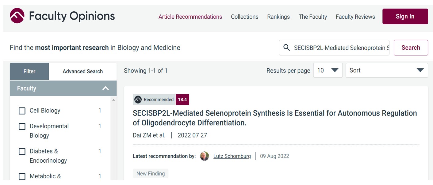 Faculty Opinions(原F1000Prime,于2020年4月12日改名为Faculty Opinions)是国际生物医学领域重要的学术论文评估机构,由全球近8000名生物学和医学领域的顶尖科学家组成。“Faculty Opinions”中的科学家从每年所发表的生物医学论文中评选出一小部分(不足千分之二)最重要的文章,推荐给全世界的生物学和医学工作者,并对论文加以评论。研究论文能被Faculty Opinions点评与收录,代表着该论文有较高的学术水平和重要的科学价值。