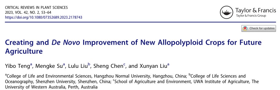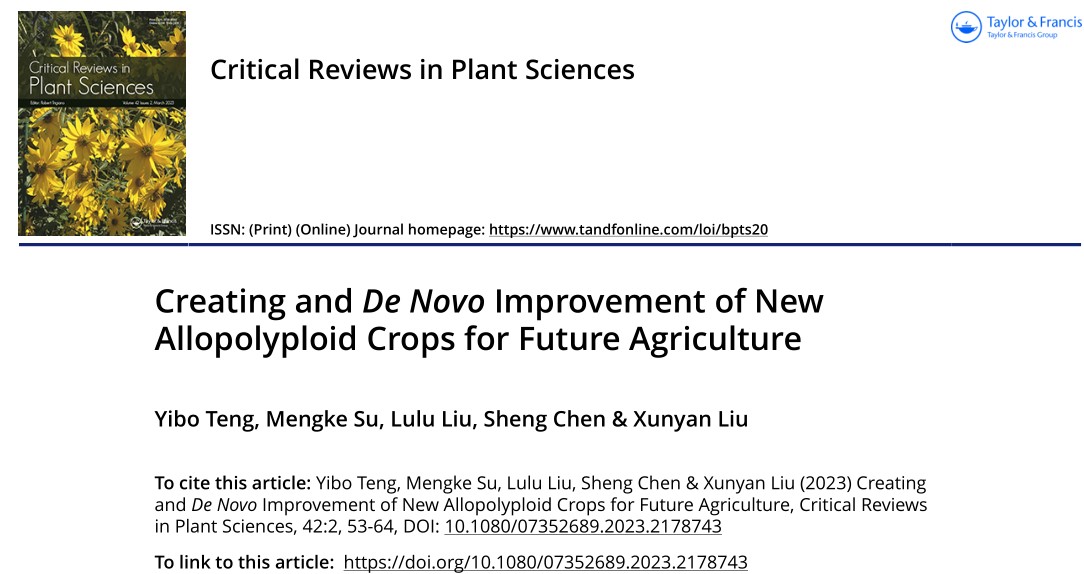 近日,重庆时时彩 刘训言副教授在植物科学领域知名期刊Critical Reviews in Plant Sciences发表题为Creating and De novo improvement of new allopolyploid crops for future agriculture的专题综述文章。Critical Reviews in Plant Sciences(2022影响因子:6.289,5年影响因子:9.078)创刊于1983年,由TAYLOR & FRANCIS INC出版商出版,收稿方向涵盖生物—植物科学全领域,行业细分领域中学术影响力较大,专业度认可很高。